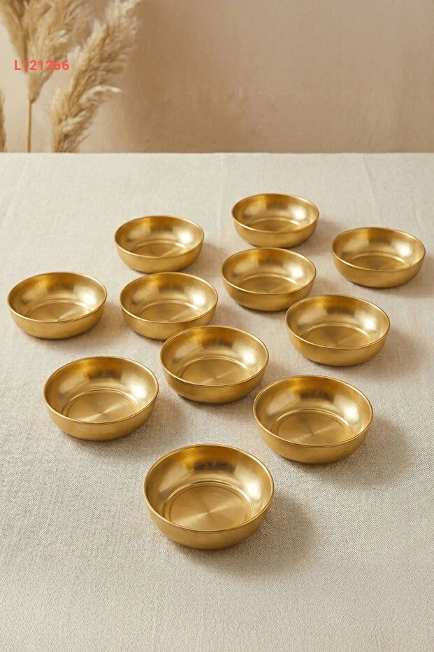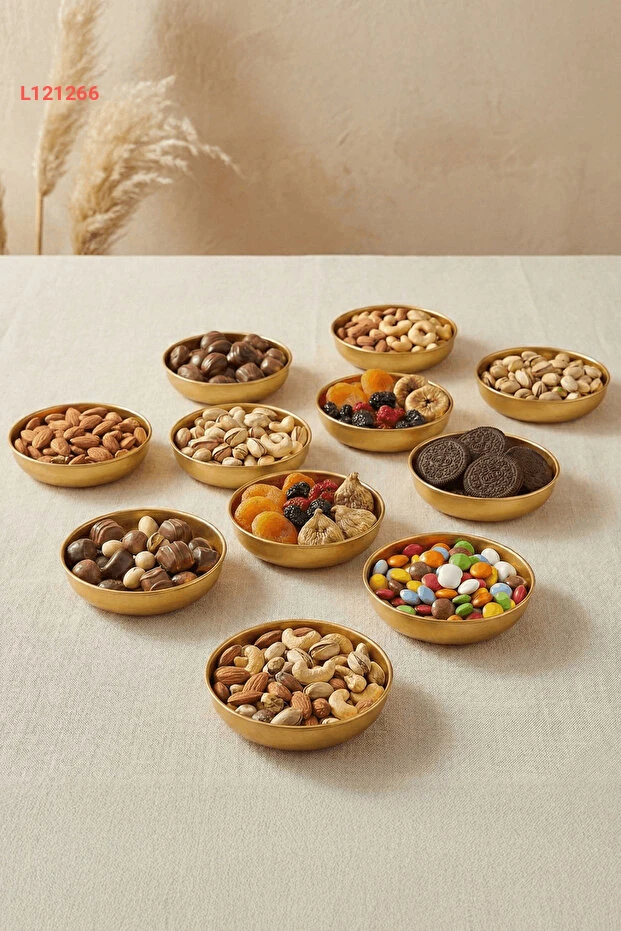 استمتع بأناقة تقديم الحلويات والمكسرات مع مجموعة Sarkap Home من 12 دندورمالك وطبق صغير بقطر 10 سم وارتفاع 3.2 سم. تتميز بتصميمها الذهبي اللامع الذي يضيف لمسة من الفخامة إلى أي مناسبة، مما يجعلها مثالية لاستقبال الضيوف أو للاستخدام اليومي. اجعل لحظاتك الحلوة أكثر تميزًا مع هذه المجموعة الجميلة!