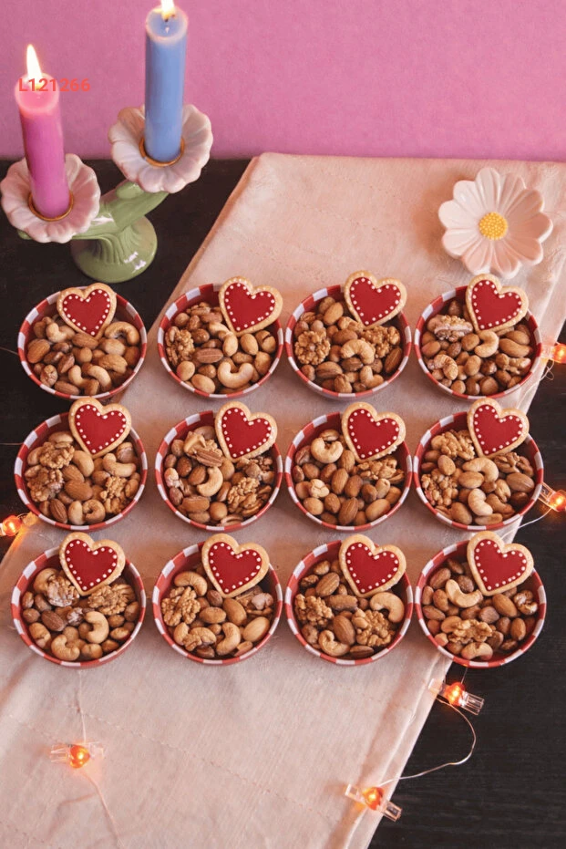 مجموعة أكواب حلويات ومكسرات بارتفاع 3.2 سم وقطر 10 سم - 12 قطعة بون أبيتي بالطراز الأحمر