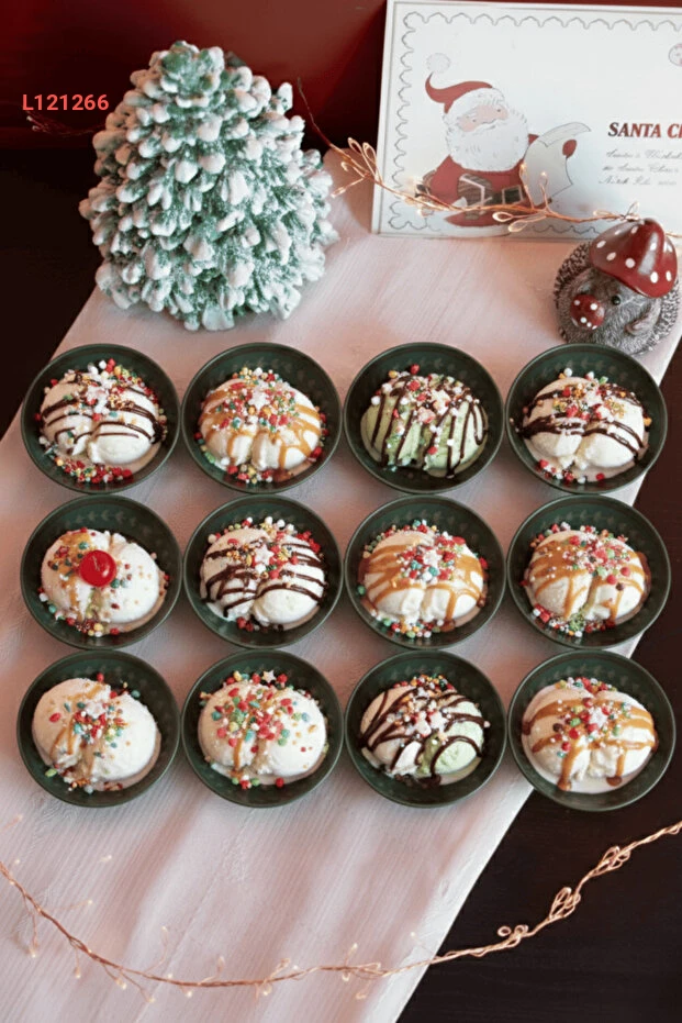 مجموعة سلطانيات الآيس كريم والمكسرات 12 قطعة بارتفاع 3.2 سم وقطر 10 سم - باللون الأخضر