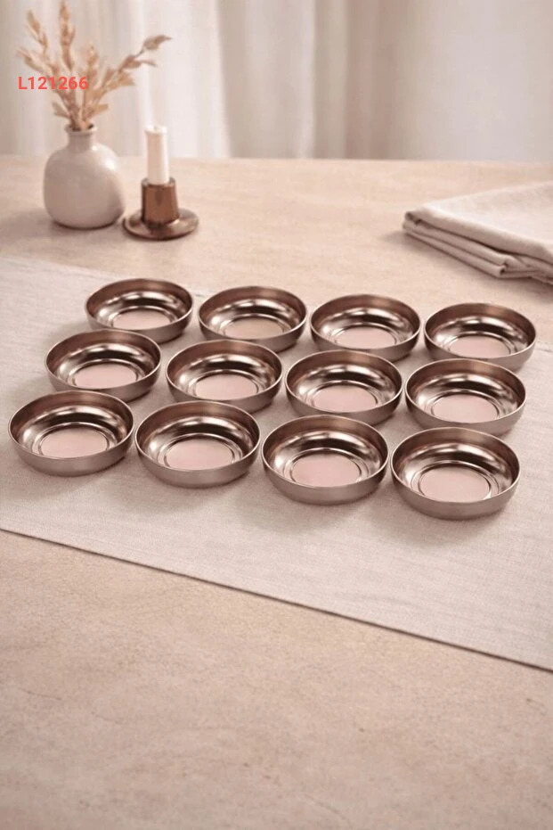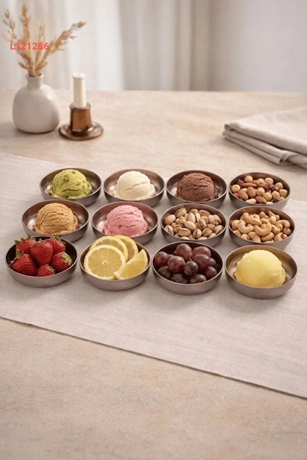 مجموعة أطباق الآيس كريم والمكسرات 12 قطعة - برونزي فاتح، بقطر 10 سم وارتفاع 3.2 سم