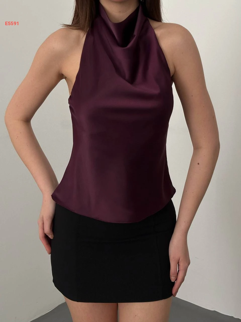 بلوزة ساتان بظهر مكشوف