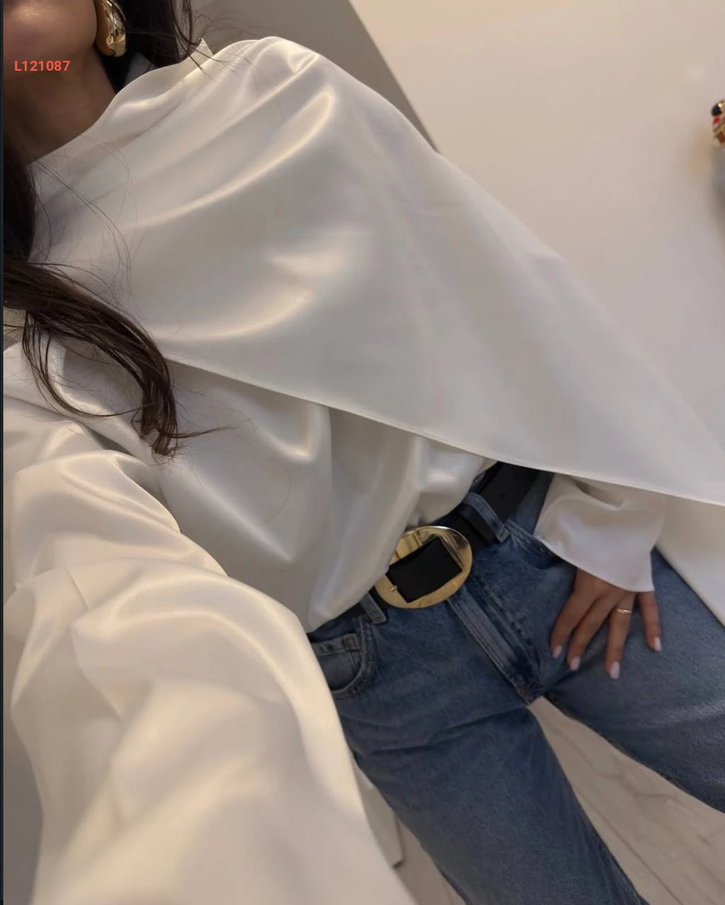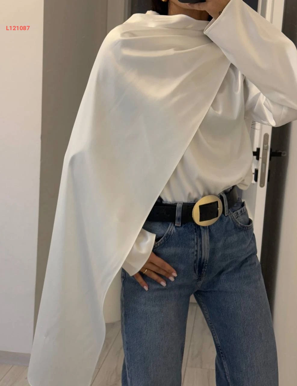 بلوزة ساتان مع تفاصيل وشاح