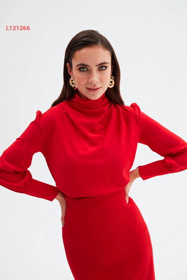 استمتعي بإطلالة أنيقة مع بلوزة ساتين بتفاصيل درابي الحمراء، التي تجمع بين الراحة والتميز. تتميز بملمسها الناعم وقصتها الجذابة، مما يمنحك مظهرًا فاخرًا يناسب مختلف المناسبات. ارتديها لتكوني محط أنظار الجميع!