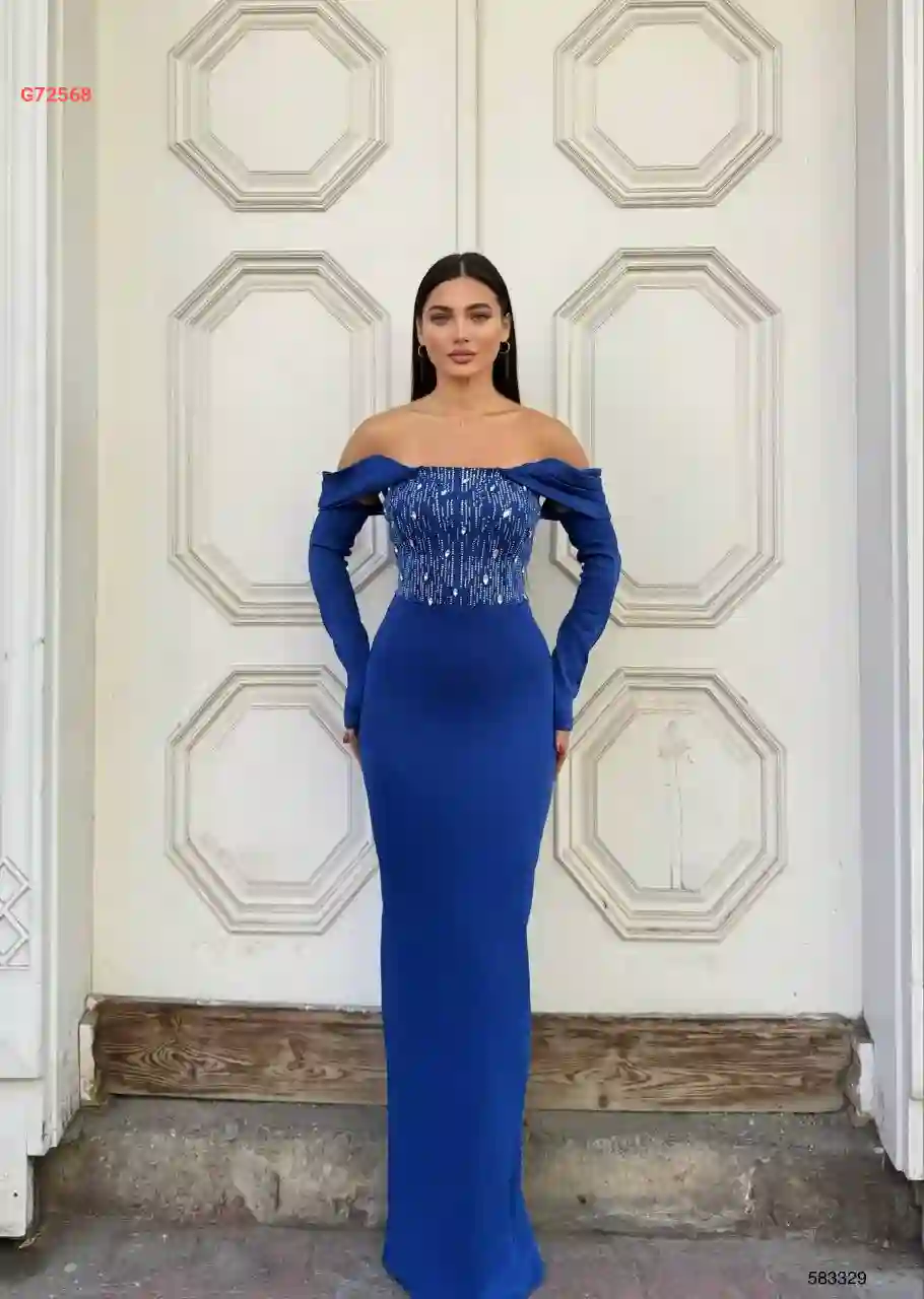 فستان مخمل طويل بأحجار عالكت...
