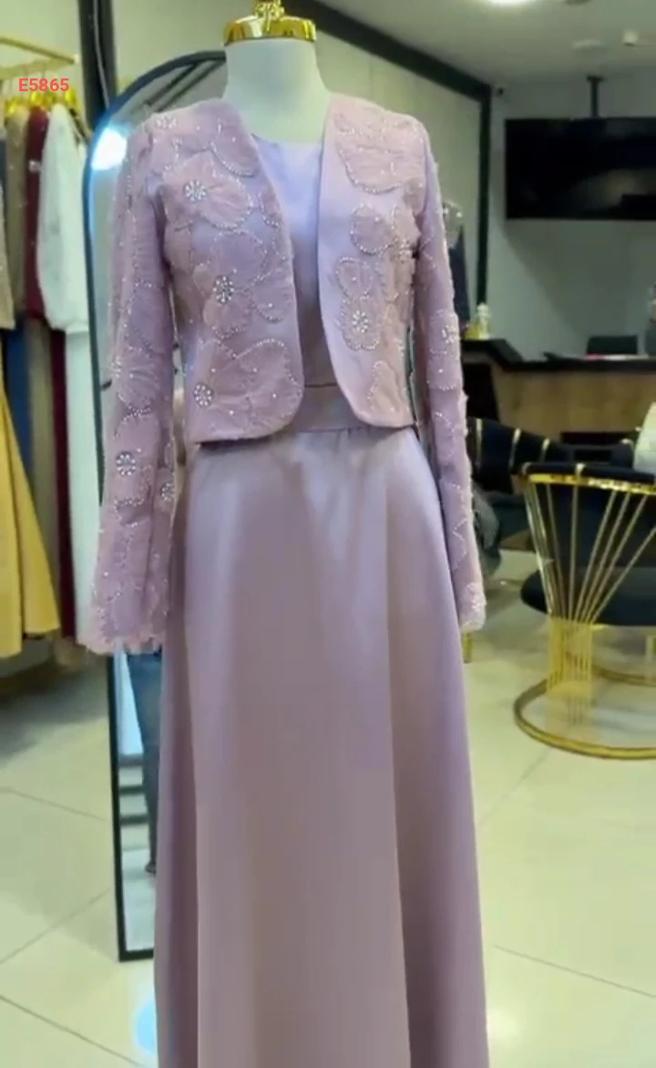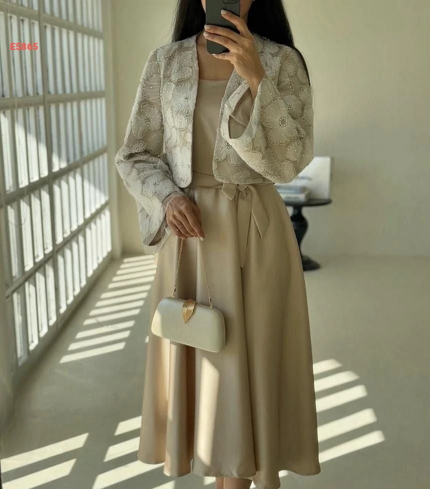 ♦طقم قطعتين جاكيت مع فستان بدون كم مع كمر .