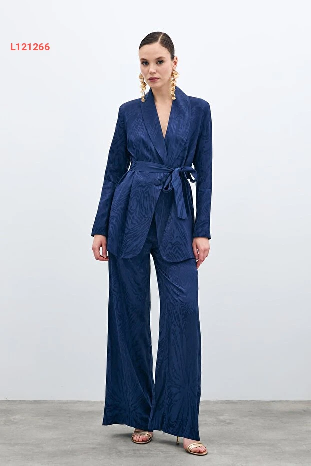 استمتع بإطلالة عصرية ومريحة مع بنطال ساتين عالي الخصر بتصميمه الأنيق باللون الأزرق الداكن. يتميز بنسيجه الفاخر الذي يوفر لك شعوراً بالراحة طوال اليوم، بينما يضفي التصميم الفريد لمسة من الأناقة على ملابسك. مثالي للمناسبات الرسمية أو الجلسات اليومية، يجعلك تتألقين أينما كنتِ!