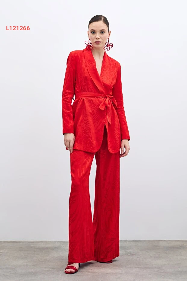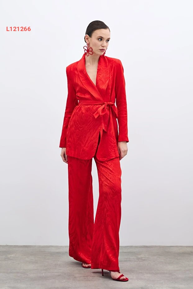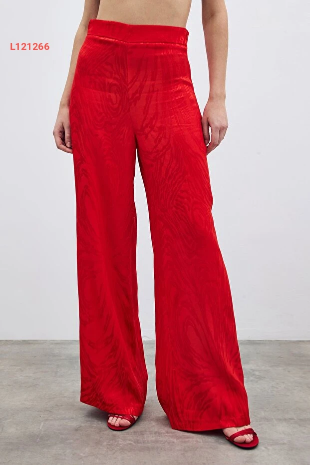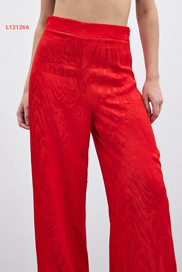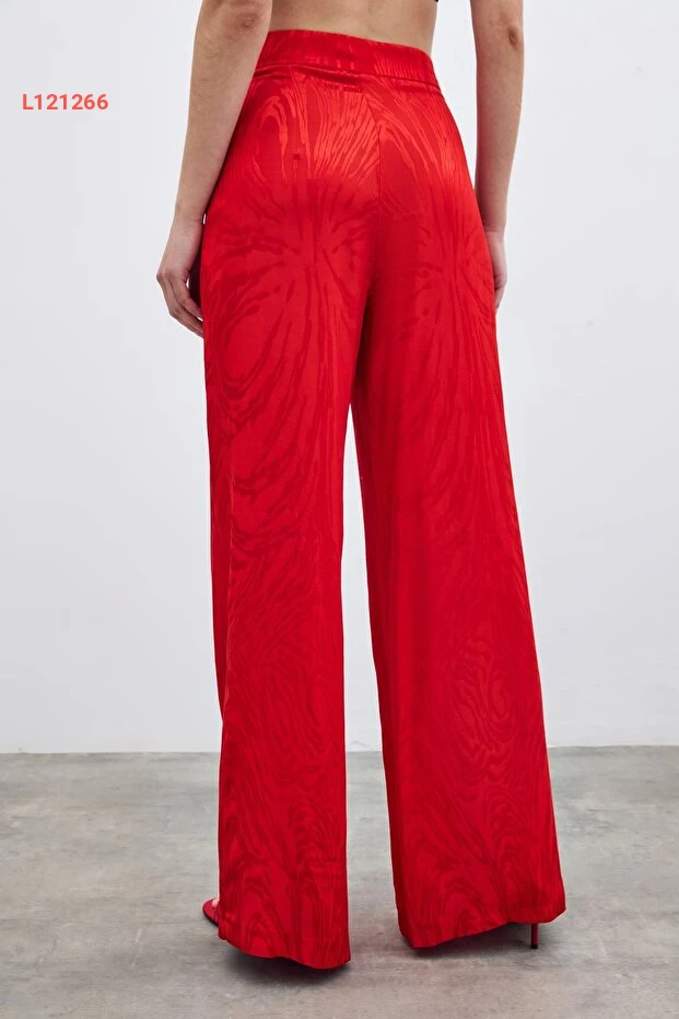 استمتع بالأناقة والراحة مع بنطلون ساتين عالي الخصر المزين بتصميم جذاب باللون الأحمر. يجمع هذا البنطلون بين الأسلوب العصري والراحة الفائقة، مما يجعله مثالياً لمناسباتك اليومية أو السهرات الخاصة. احصل على إطلالة متألقة تبرز أنوثتك وتضفي لمسة من الجاذبية على مظهرك.
