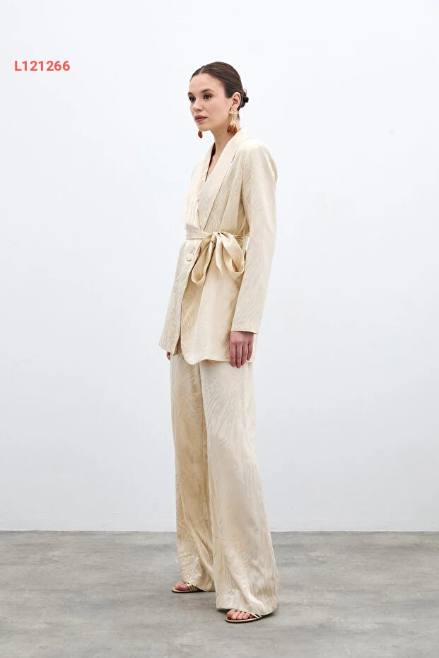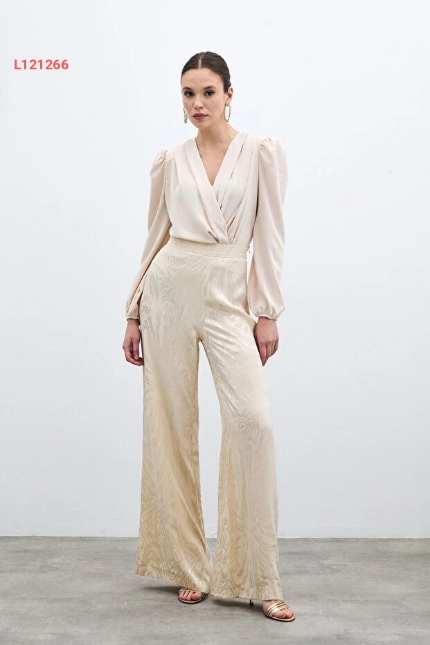 ارتدِ الأناقة والراحة مع بنطال ساتين عالي الخصر المُزخرف بلون الحجر الرائع. يجمع بين التصميم العصري والمواد الفاخرة، مما يمنحك إطلالة متميزة تناسب مختلف المناسبات. استمتع بحرية الحركة بفضل قصته المريحة التي تبرز جمال قوامك.