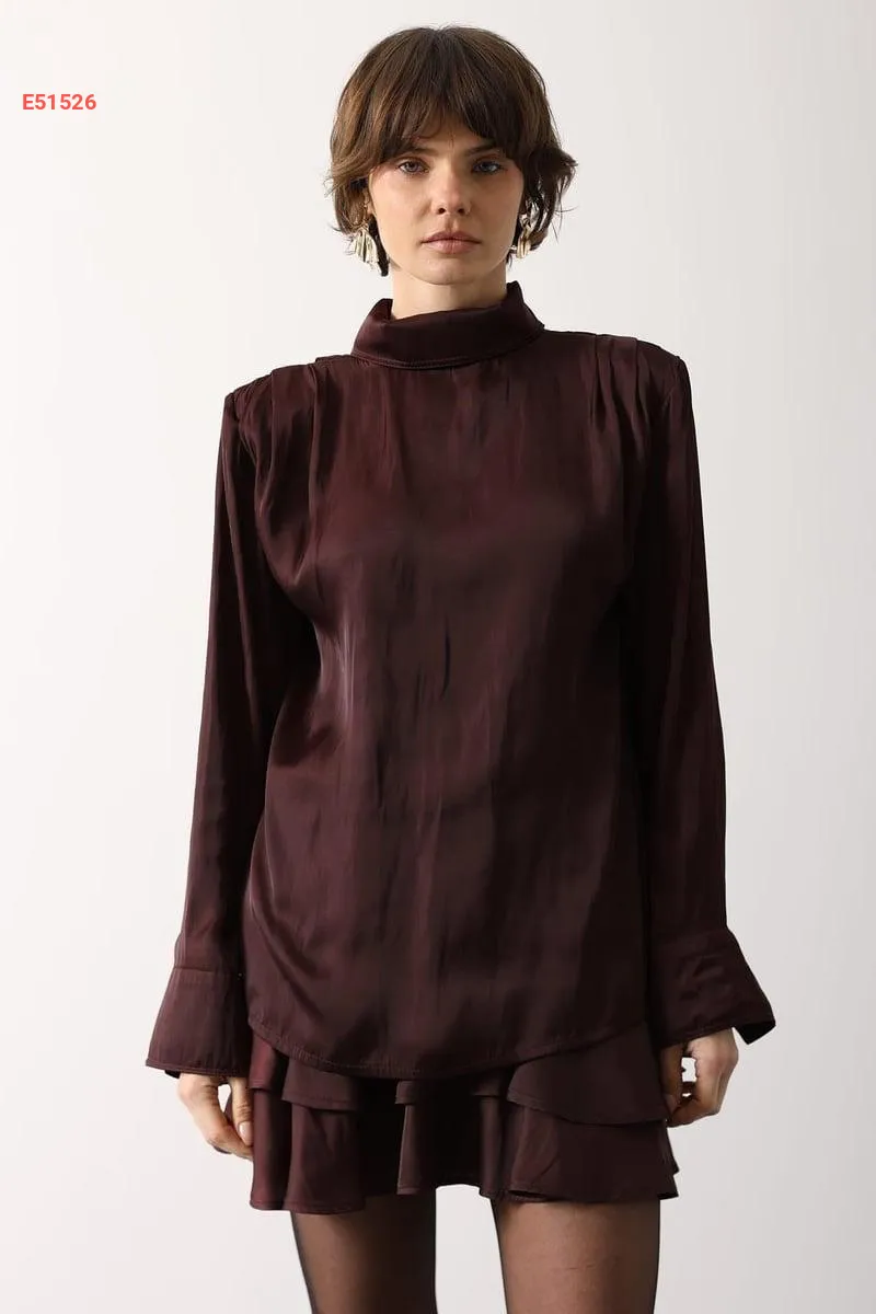 بلوزة كم طويل ساتان