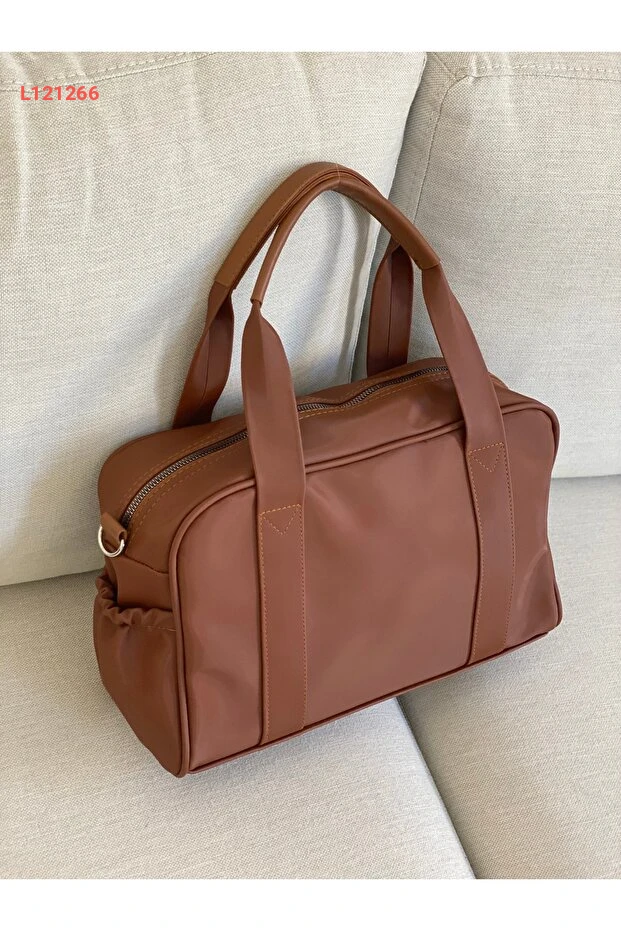 حقيبة ساتان متوسطة الحجم بتفاصيل جيوب أمامية وجانبية وبطانة داخلية