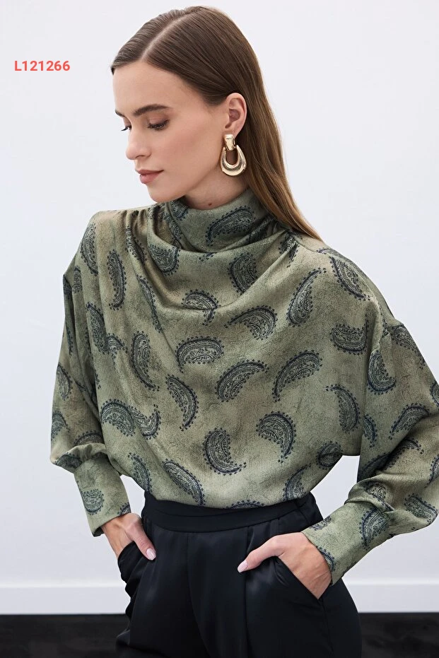 استمتع بالأناقة والراحة مع بلوزة Sateen Degaje Yaka بنقشها الفريد بلون الهاكي. تتميز بقصتها العصرية وأقمشتها الفاخرة، مما يجعلها الخيار المثالي لإطلالة مميزة في كل مناسبة. تضيف هذه البلوزة لمسة من الأناقة العصرية إلى خزانة ملابسك، مما يجعلك تتألقين في كل لحظة.