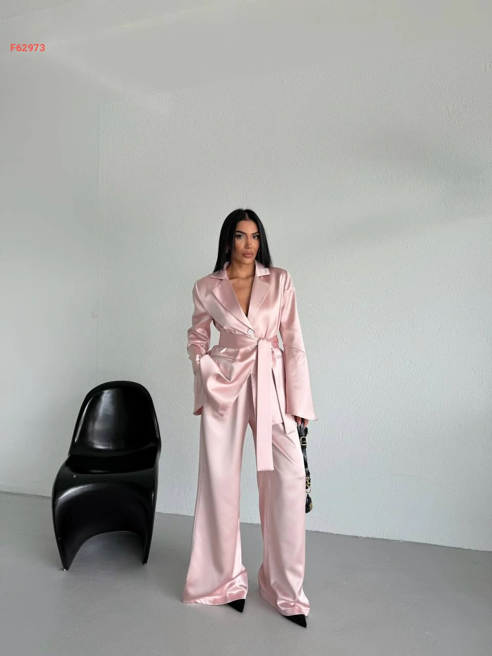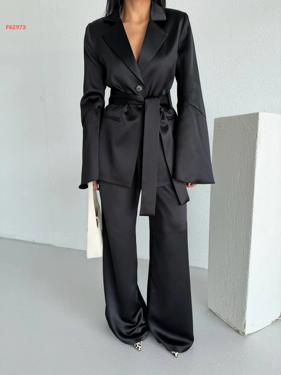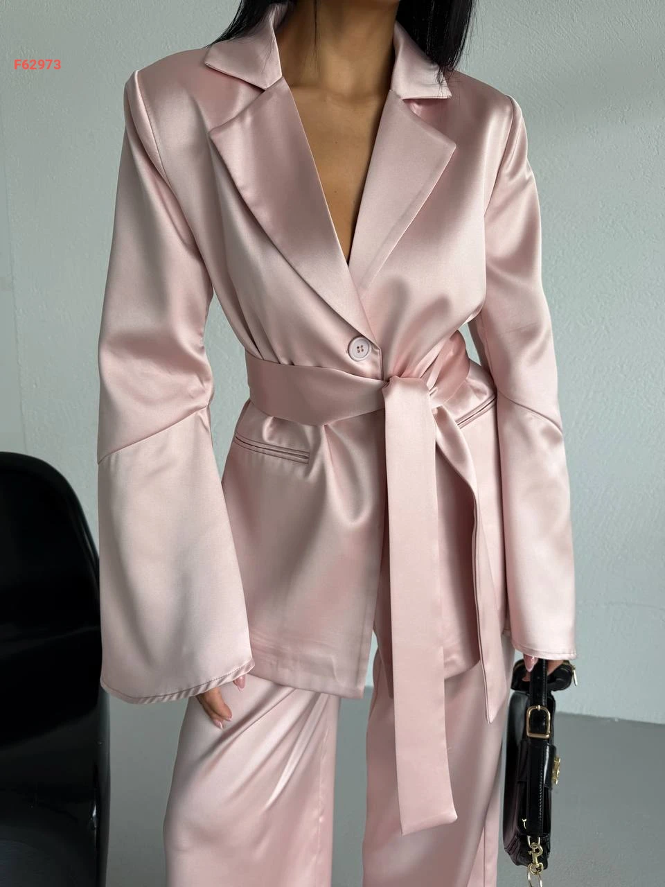 طقم بنطال ساتان وجاكيت مع زنار