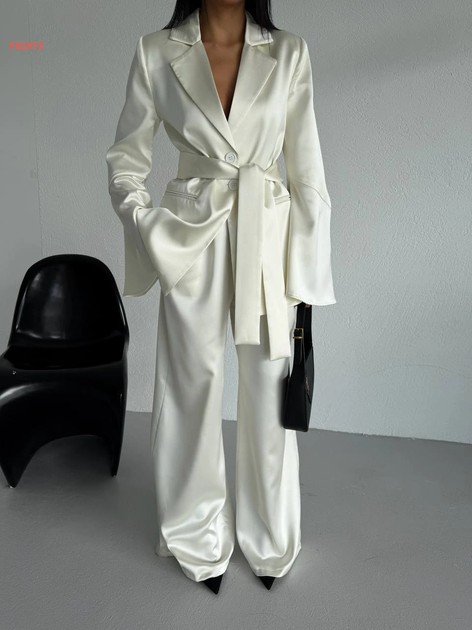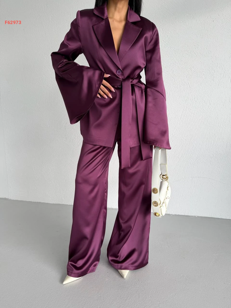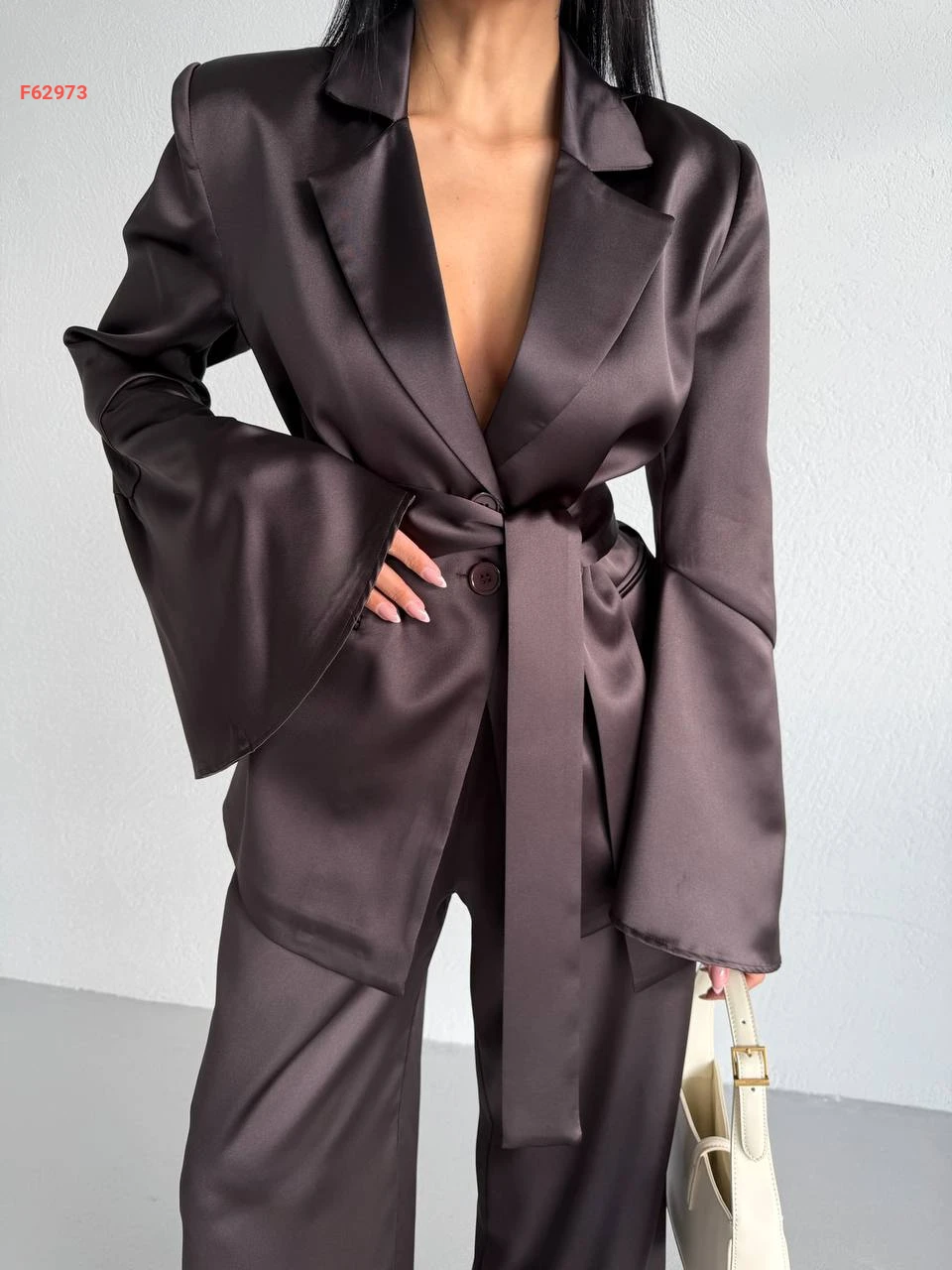 طقم بنطال ساتان وجاكيت مع زنار