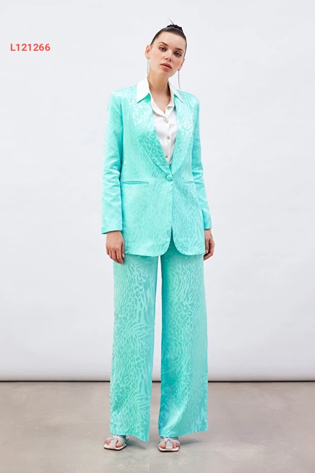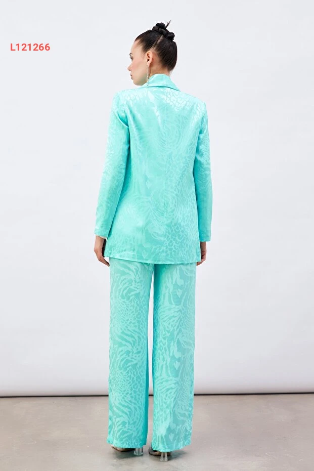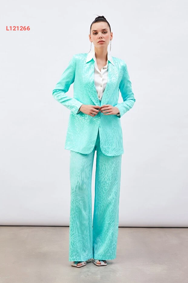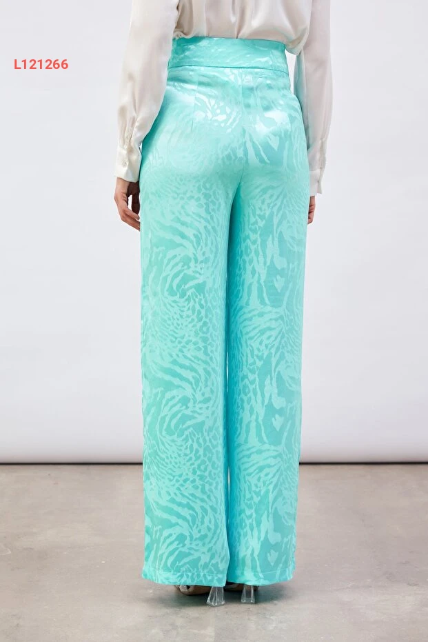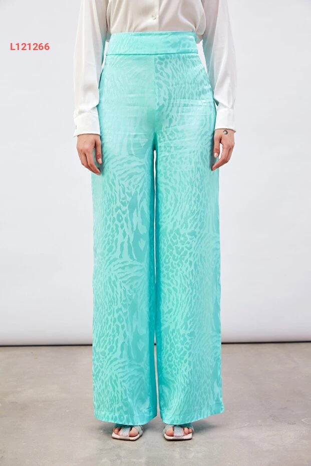 استمتع بأناقة لا مثيل لها مع بنطال الساتان المزخرف بلون التركواز الجذاب. يتميز بنطال الساتين بنقوش عصرية تضفي لمسة فريدة على إطلالتك، بينما يوفر لك الراحة المثالية بفضل خامته الناعمة والمريحة. ارتديه في المناسبات الخاصة أو في إطلالتك اليومية ليكون الخيار المثالي لكل الأوقات!