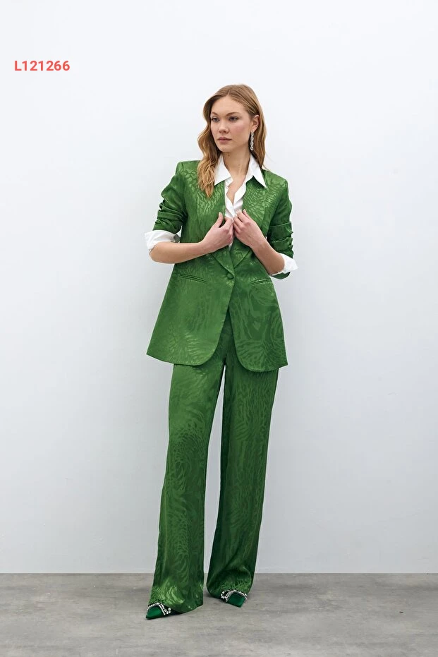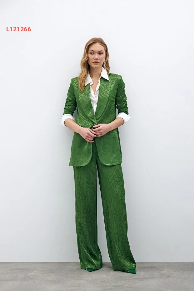 استمتع بإطلالة أنيقة وعصرية مع بنطلون ساتين ذو تصميم مزخرف باللون الأخضر. مصنوع من قماش ساتين فاخر، يجمع بين الراحة والأناقة، مما يجعله الخيار المثالي لمناسباتك الخاصة أو الخروجات اليومية. جدد خزانتك بأحدث صيحات الموضة مع هذا البنطلون الذي يبرز أنوثتك ويعكس ذوقك الرفيع.