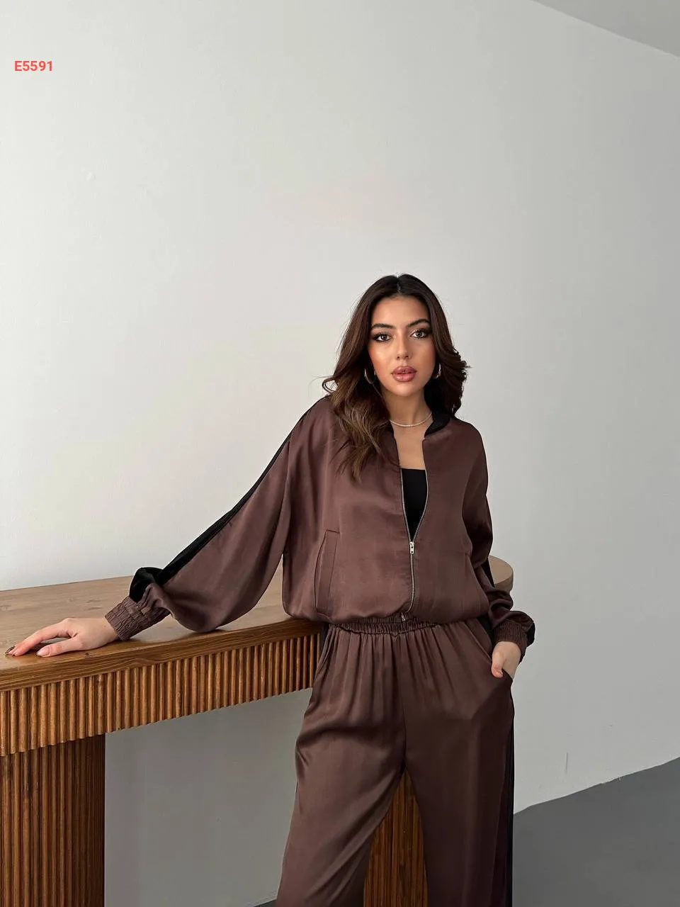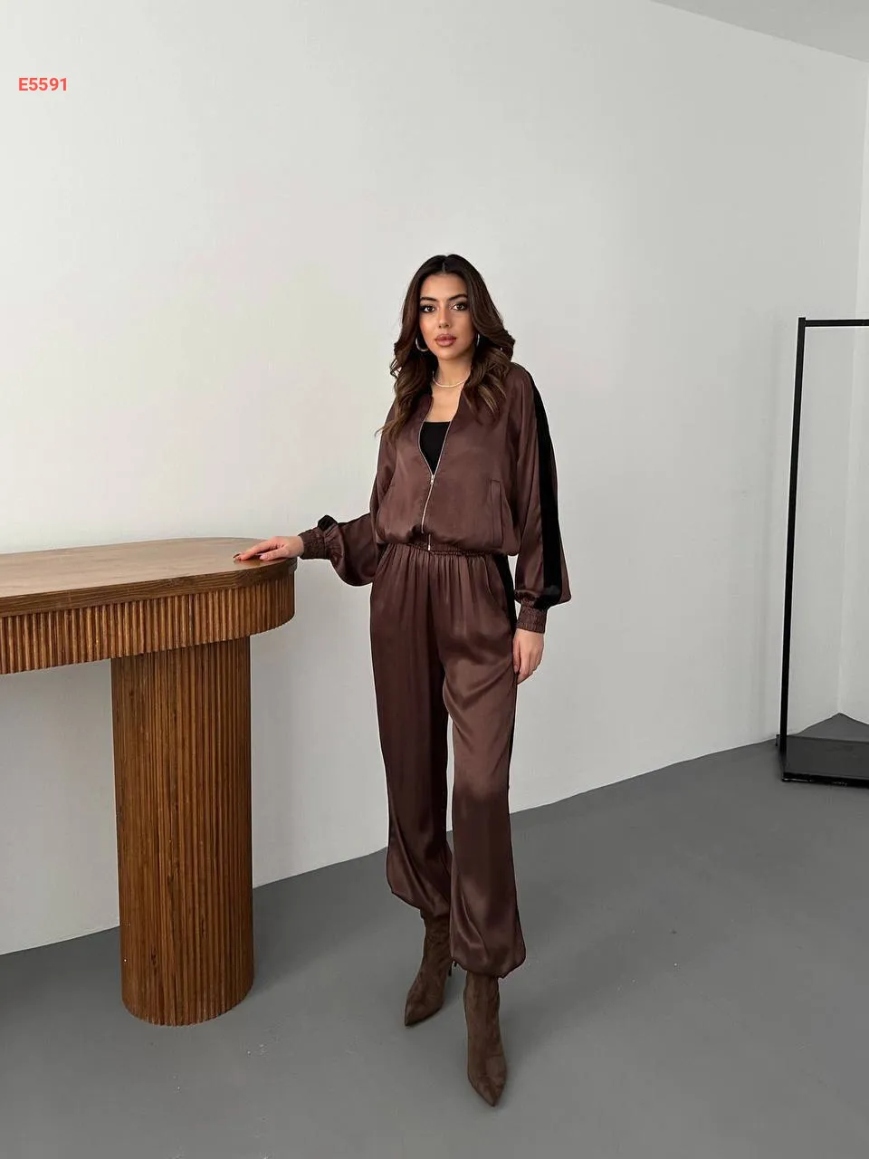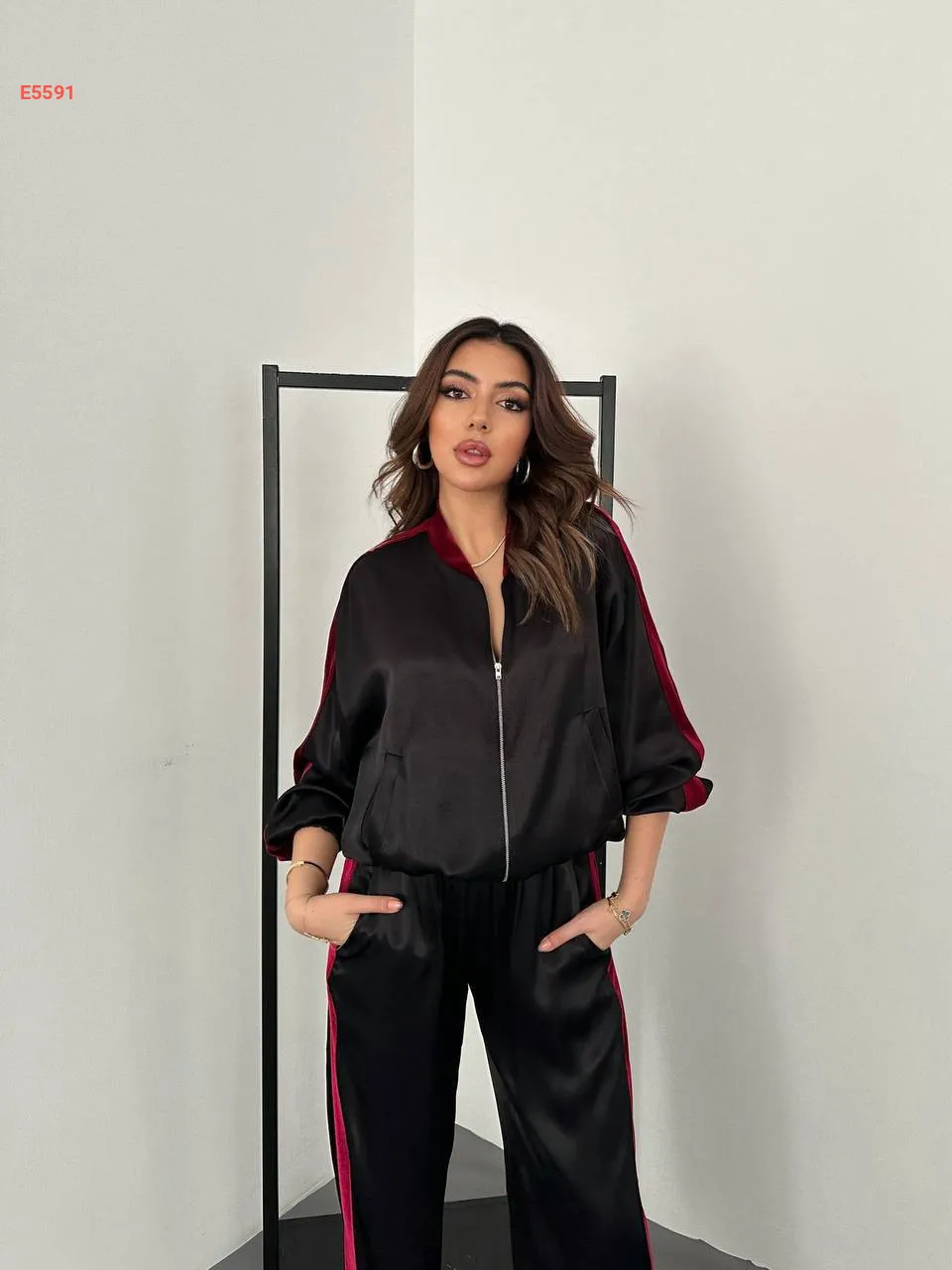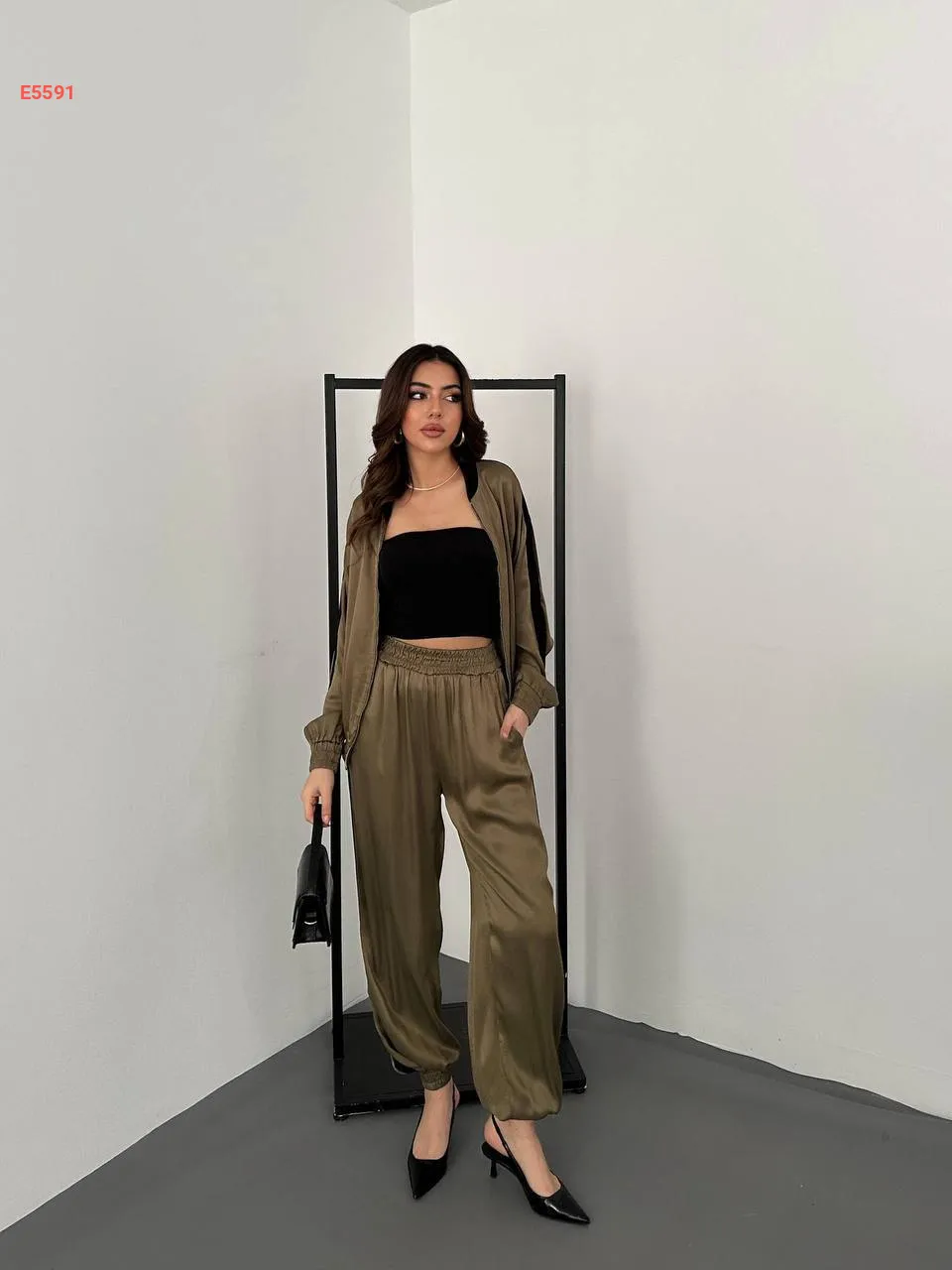 طقم بنطال ساتان لميع وجاكيت