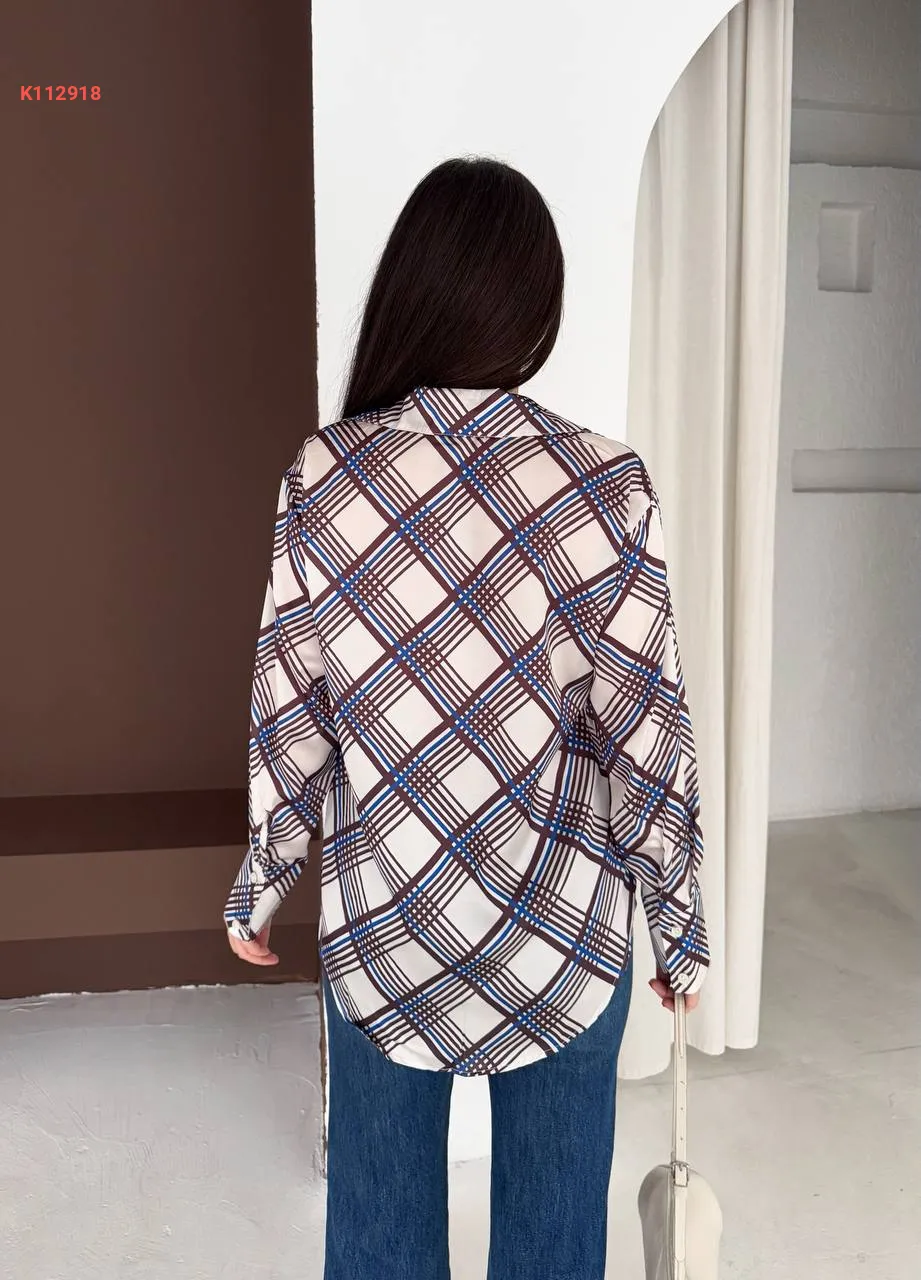 قميص ساتان بتفاصيل مخططة