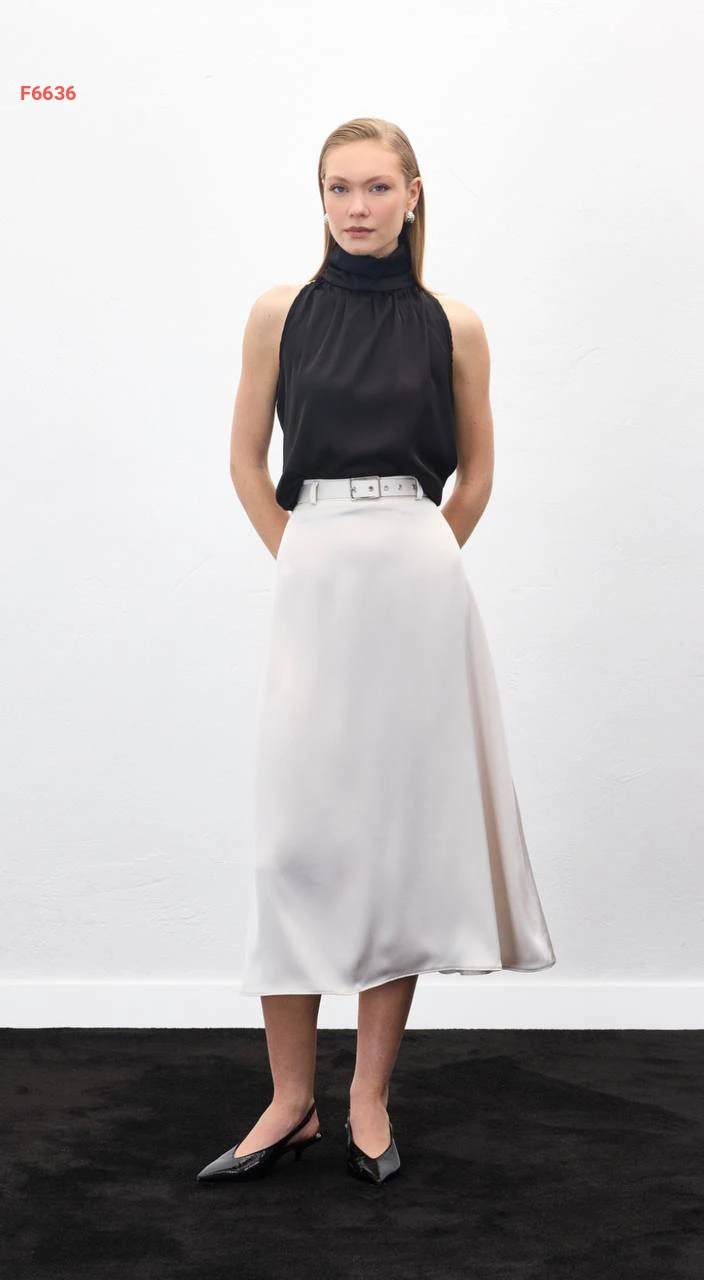 تنورة ساتان ملوش مع حزام