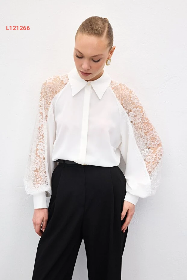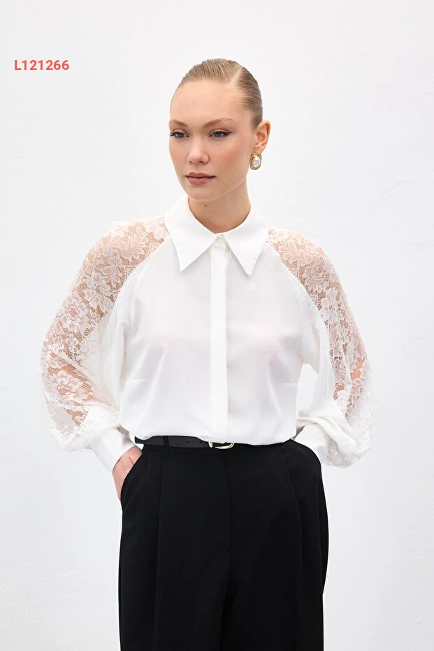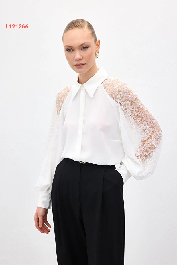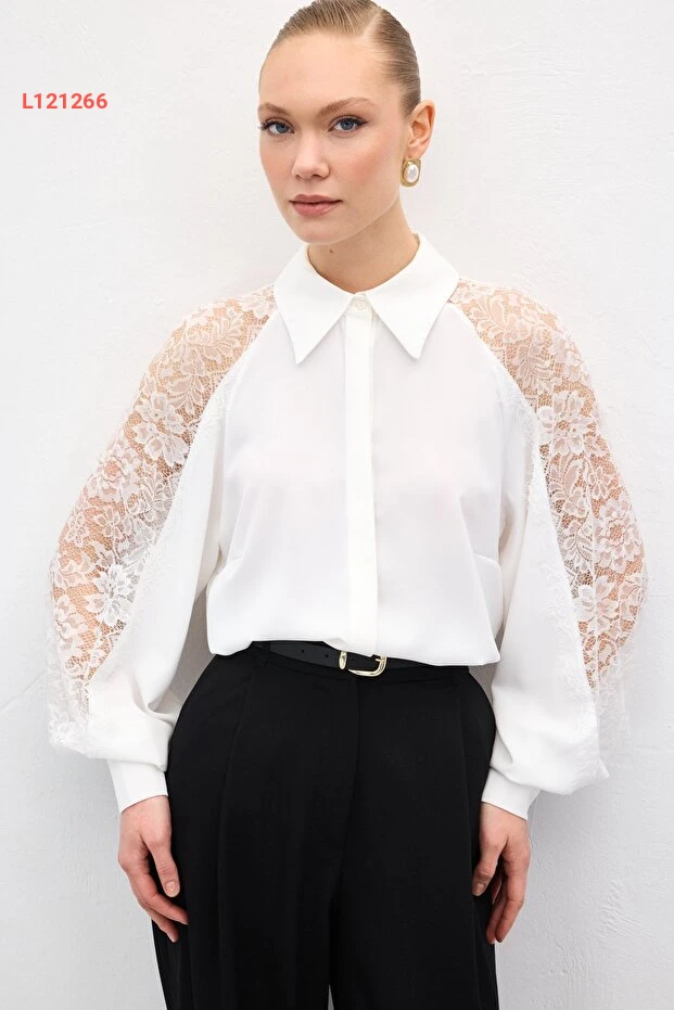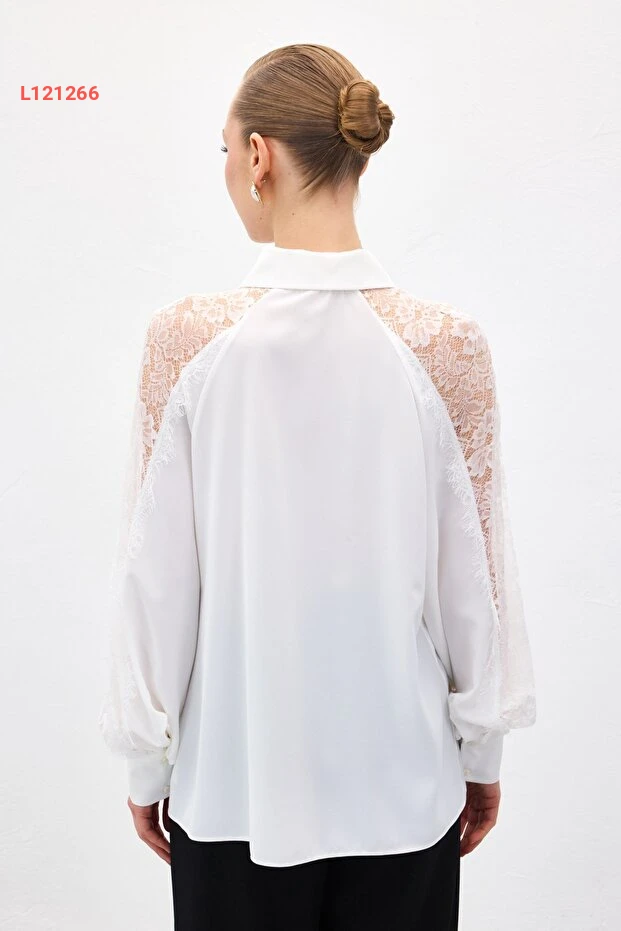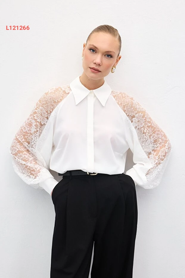 اجعل إطلالتك تتألق مع قميص ساتين بكم دانتيل بتفاصيل أنيقة بلون الإكرو. يتميز بتصميمه العصري الذي يمنحك لمسة من الأنوثة والراحة، مما يجعله الخيار المثالي لمختلف المناسبات. ارتديه مع بنطلون جينز أو تنورة لتكملي إطلالتك بأسلوب راقٍ وجذاب.