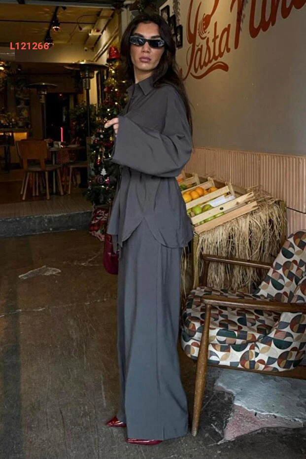 استمتعي بالأناقة والراحة مع مجموعة Seeh Füme Uzun Kollu Oversize Kadın Takım SH338! تتميز هذه الطقم بتصميم واسع يلائم جميع الأجسام، مع أكمام طويلة تمنحك المظهر العصري المثالي لمناسباتك اليومية. اجعلي إطلالتك مميزة مع خامات ذات جودة عالية توفر لك الشعور بالراحة والحرية في الحركة.