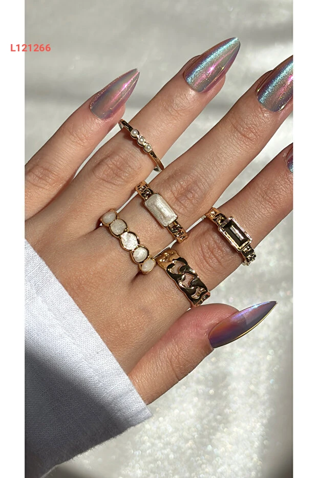 مجموعة الخواتم النسائية بتصميم ذهبي مكونة من 5 قطع