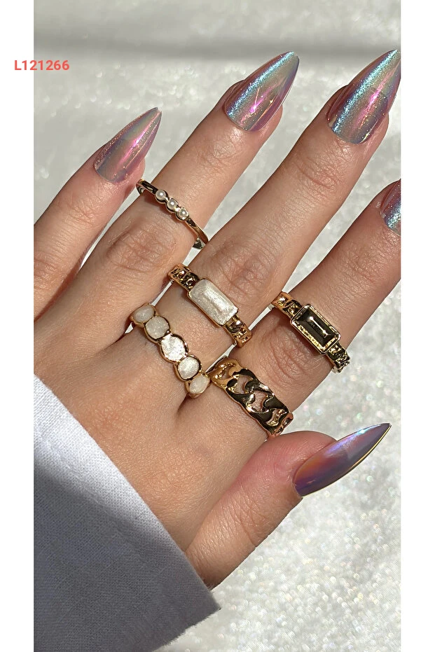 استمتعي بأناقة لا مثيل لها مع مجموعة خواتم Eylülü الفاخرة ذات اللون الذهبي! تتضمن المجموعة خمسة خواتم بتصاميم عصرية تضفي لمسة ساحرة على إطلالتك، مما يجعلها مثالية لكل مناسبة. اجمعي بين الأناقة والراحة واستمتعي بإطلالة مميزة تخطف الأنظار!