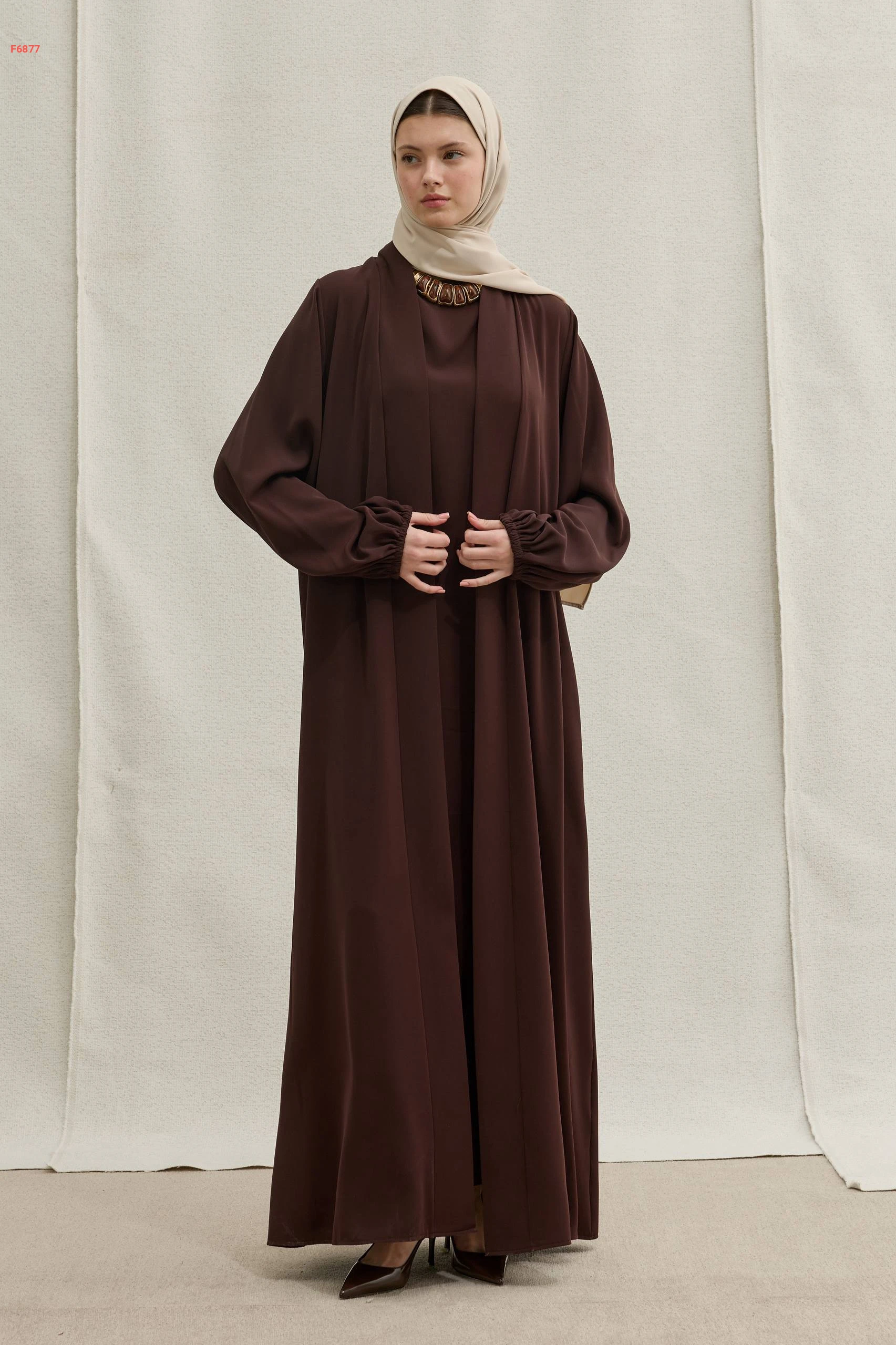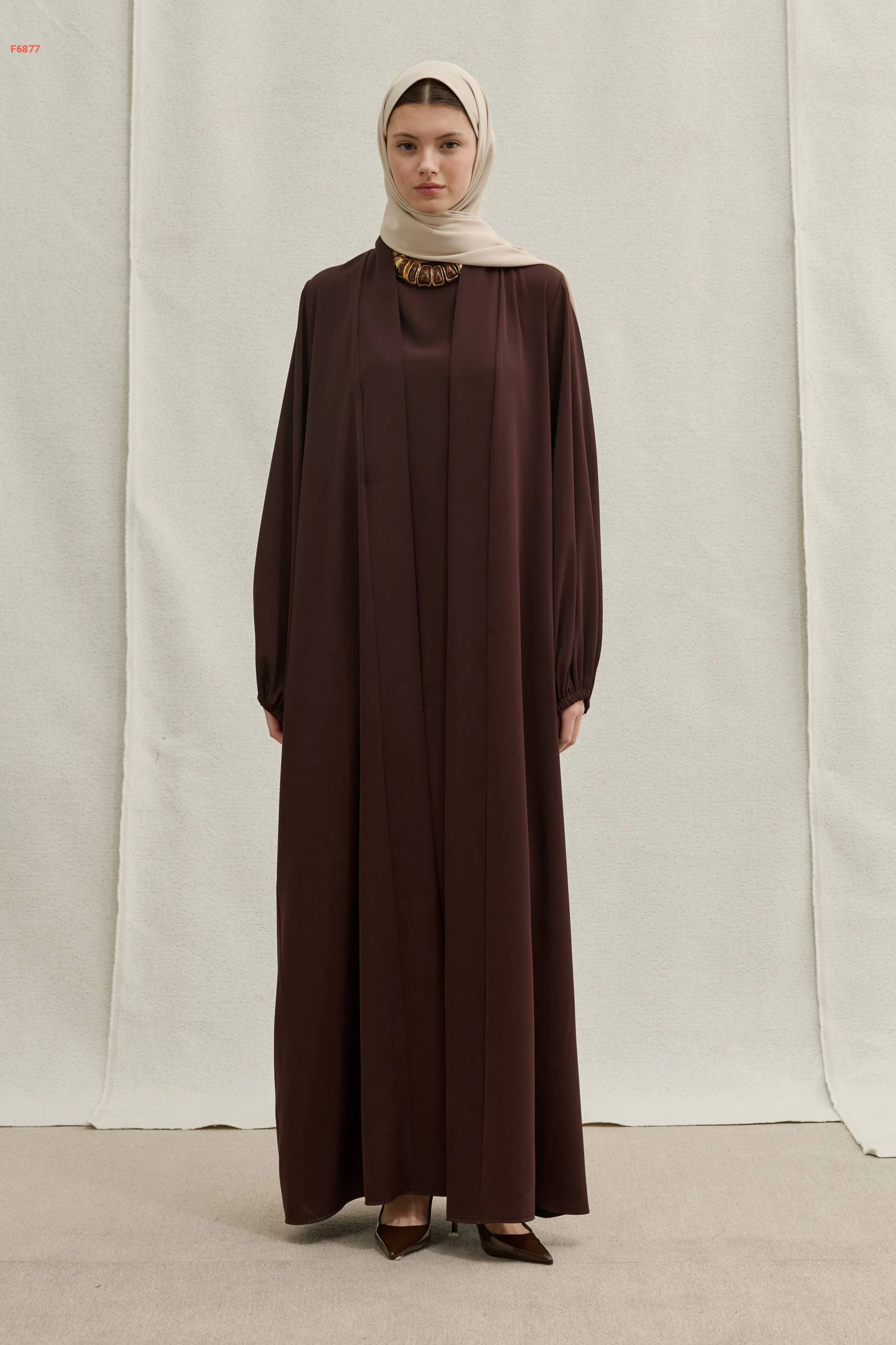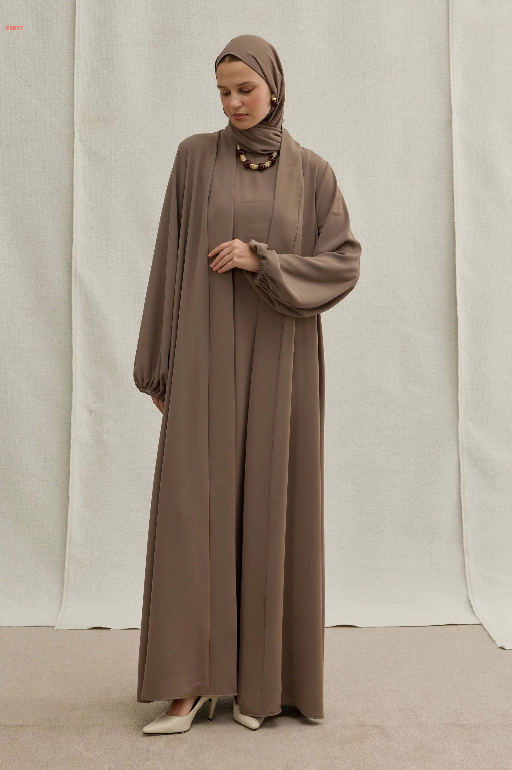 طقم عباية وفستان داخلي بتصميم انسيابي فاخر وأكمام مزمومة