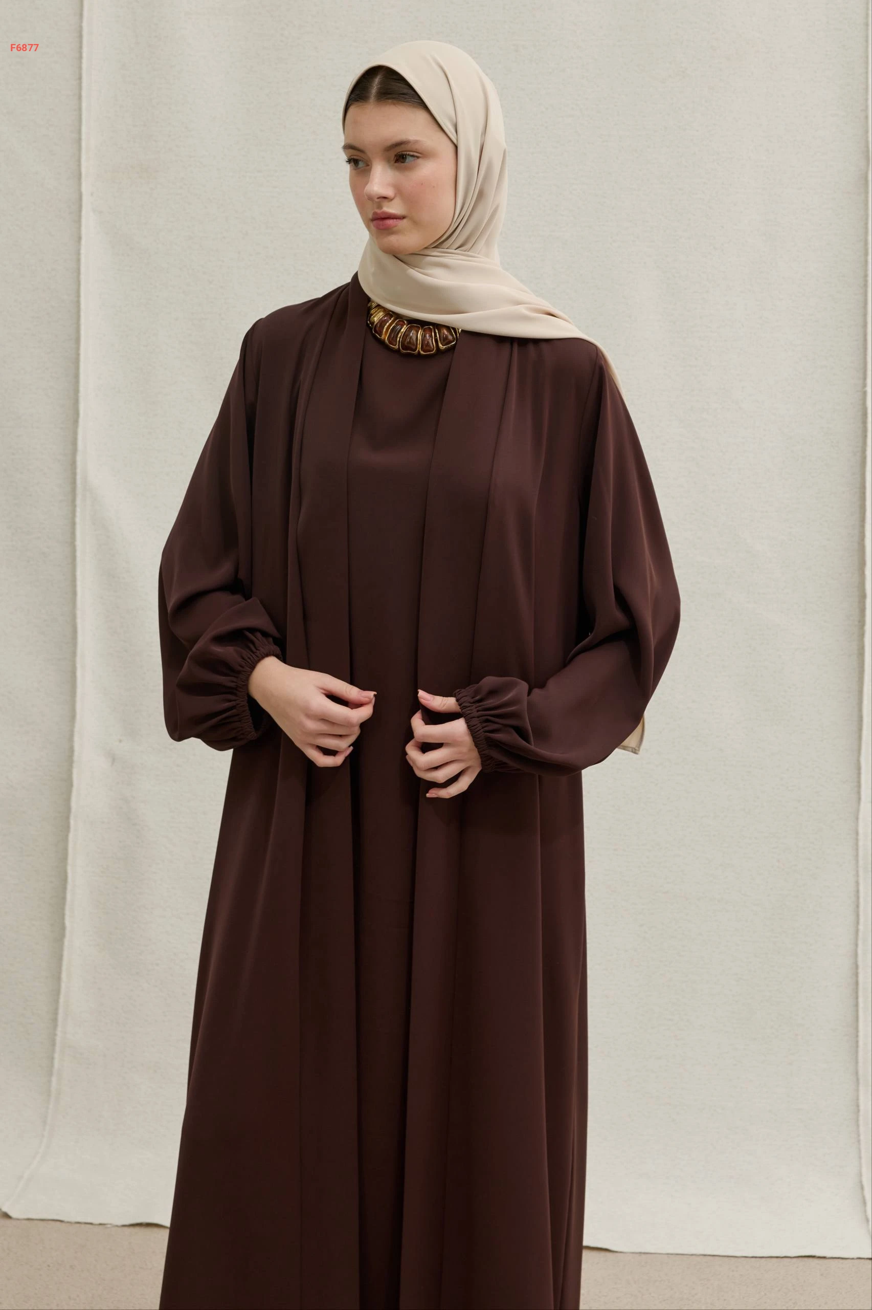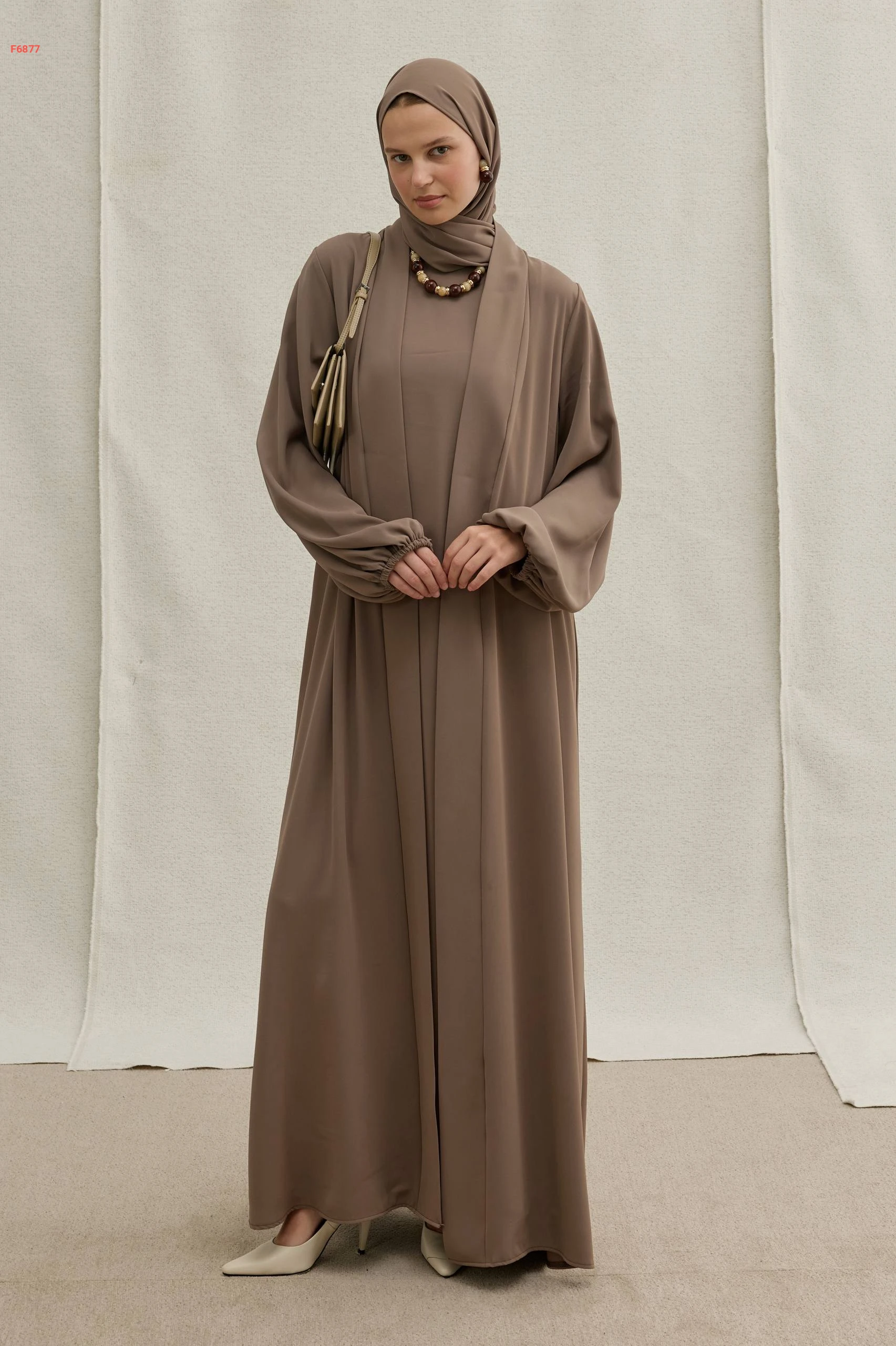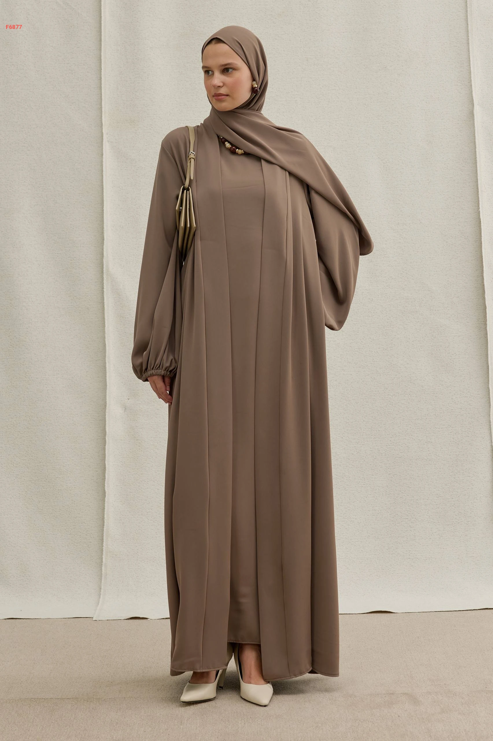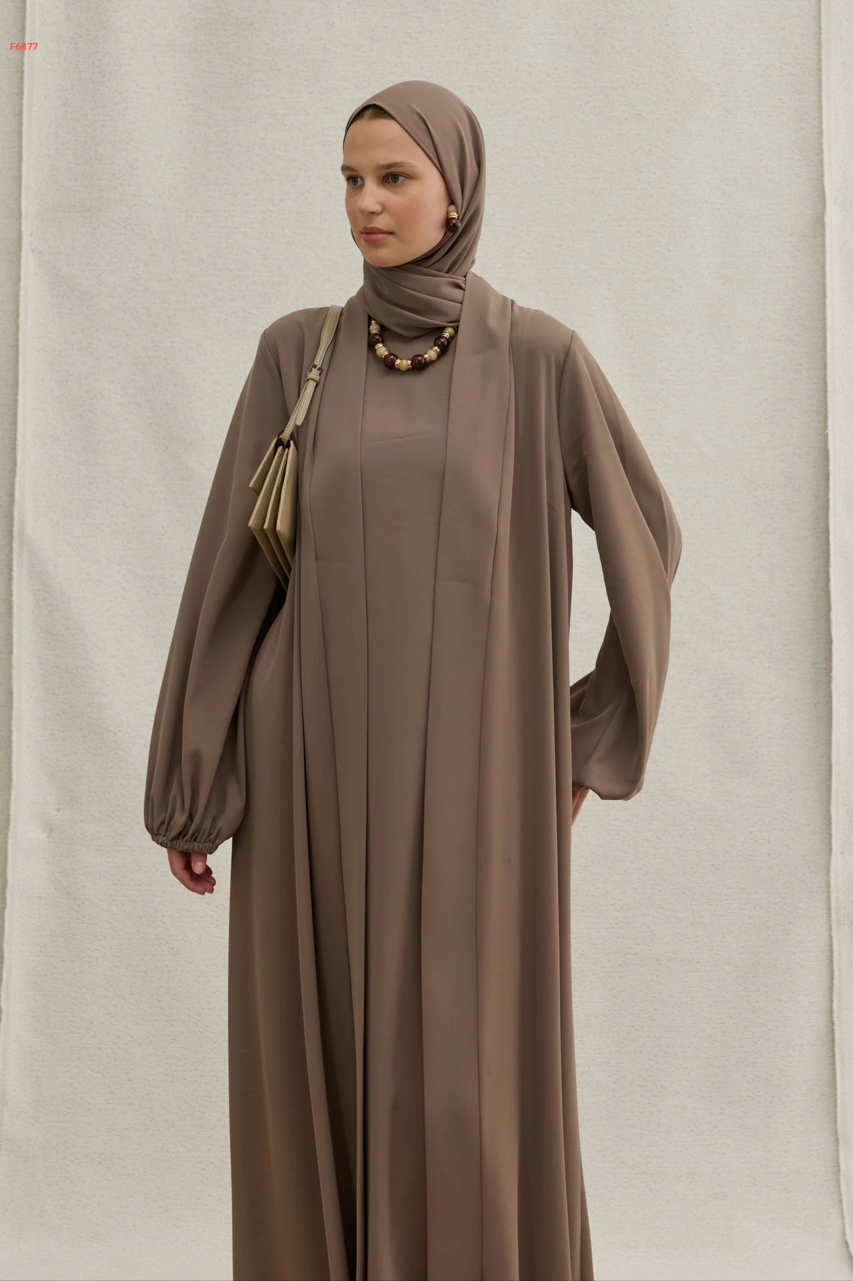 طقم عباية وفستان داخلي بتصميم انسيابي فاخر وأكمام مزمومة