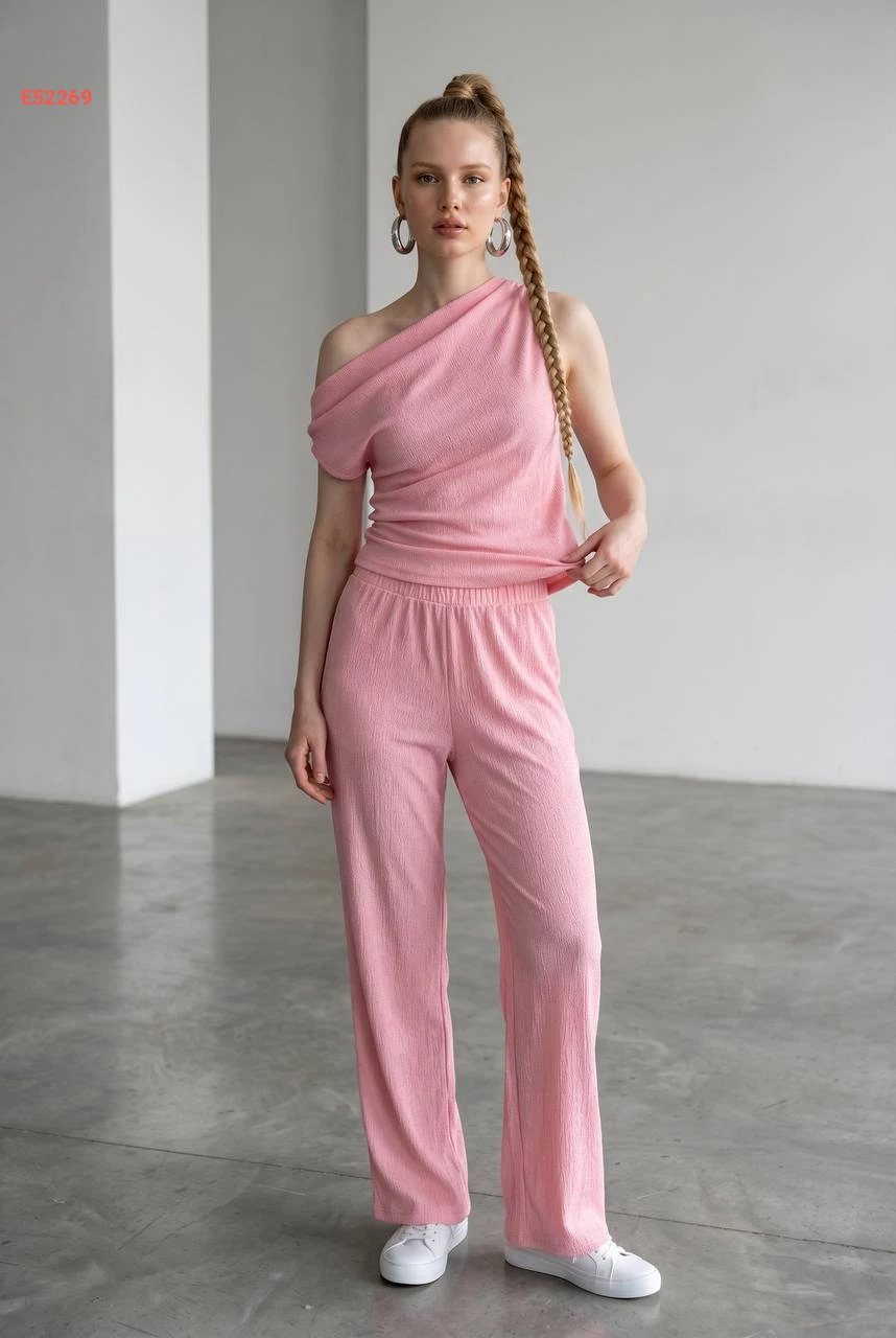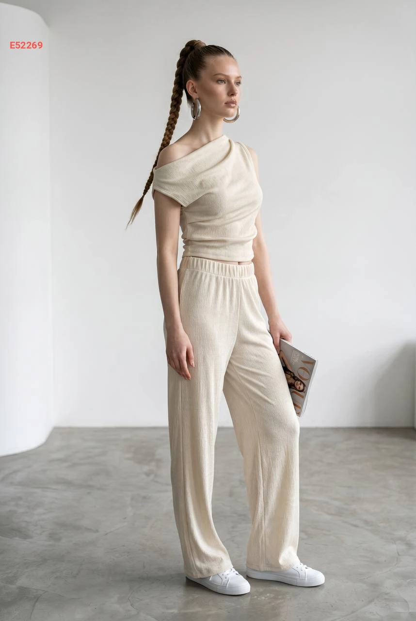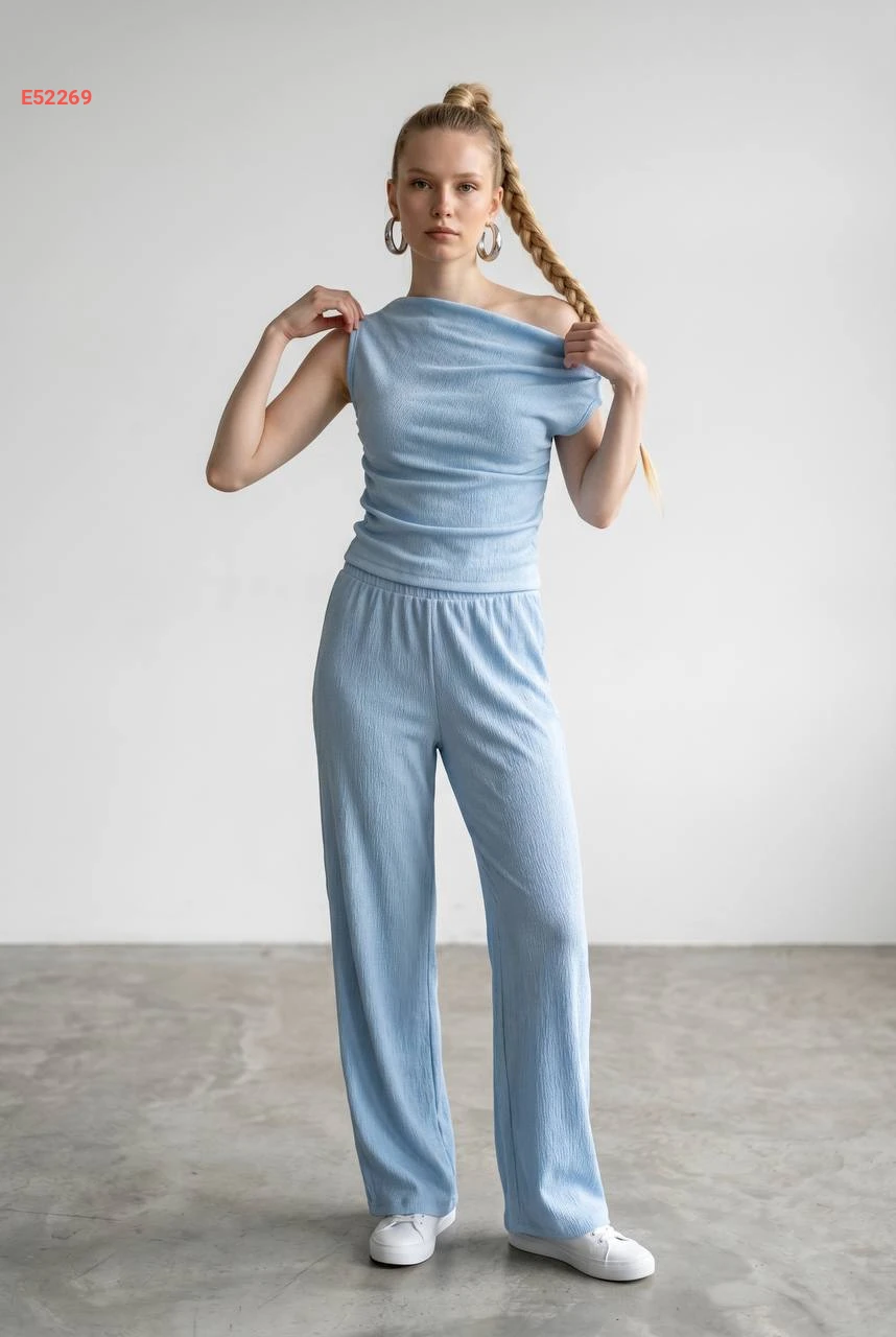 طقم بنطال وبلوزة حفر بكتف منسدل