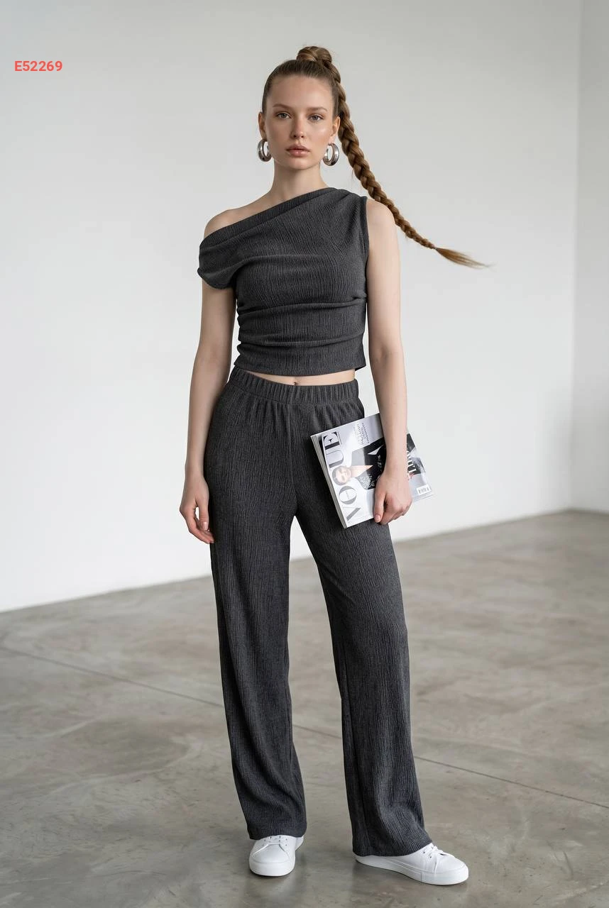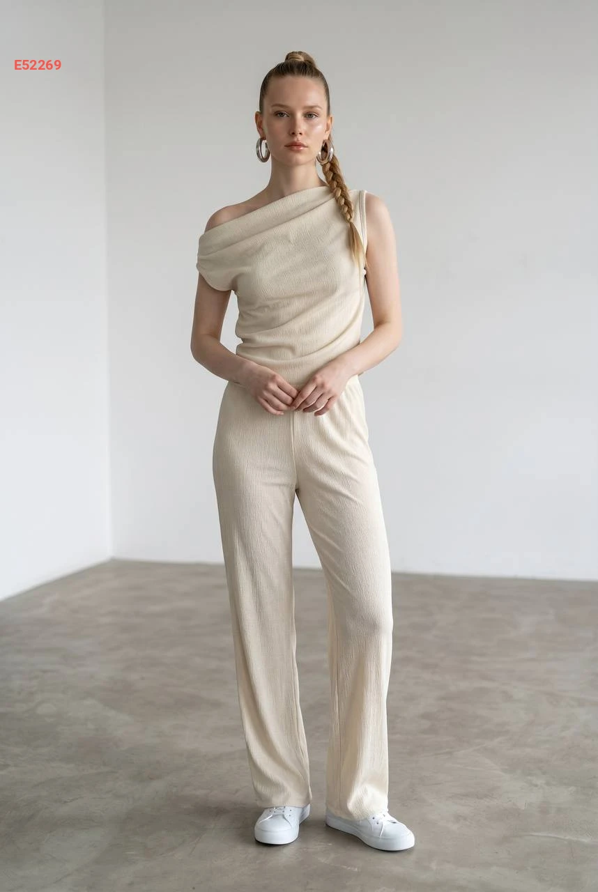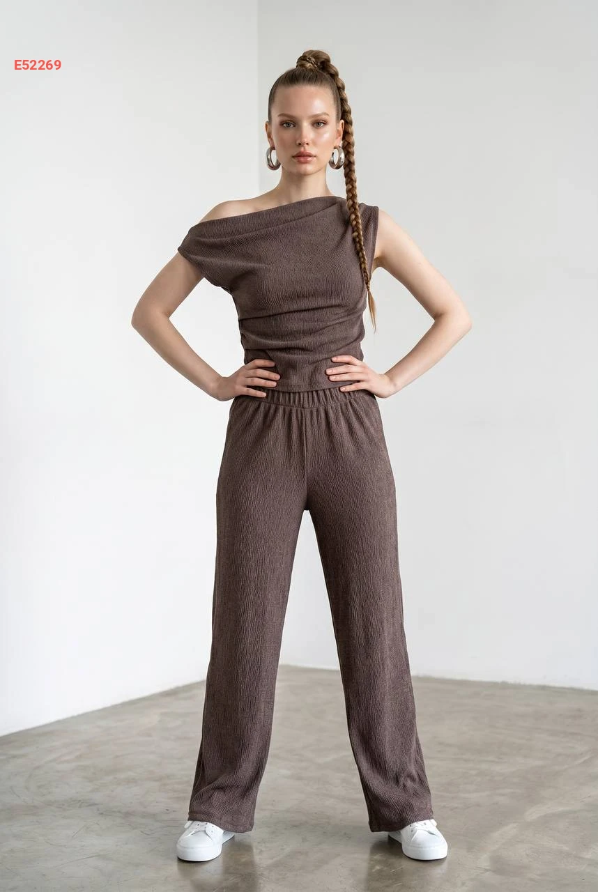 طقم بنطال وبلوزة حفر بكتف منسدل