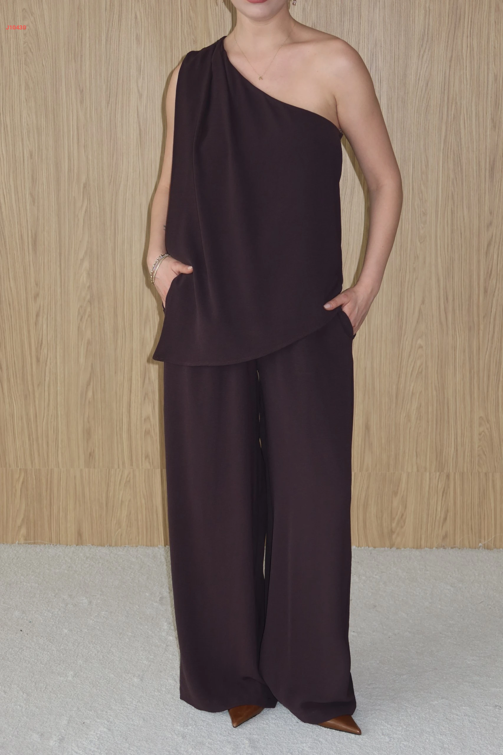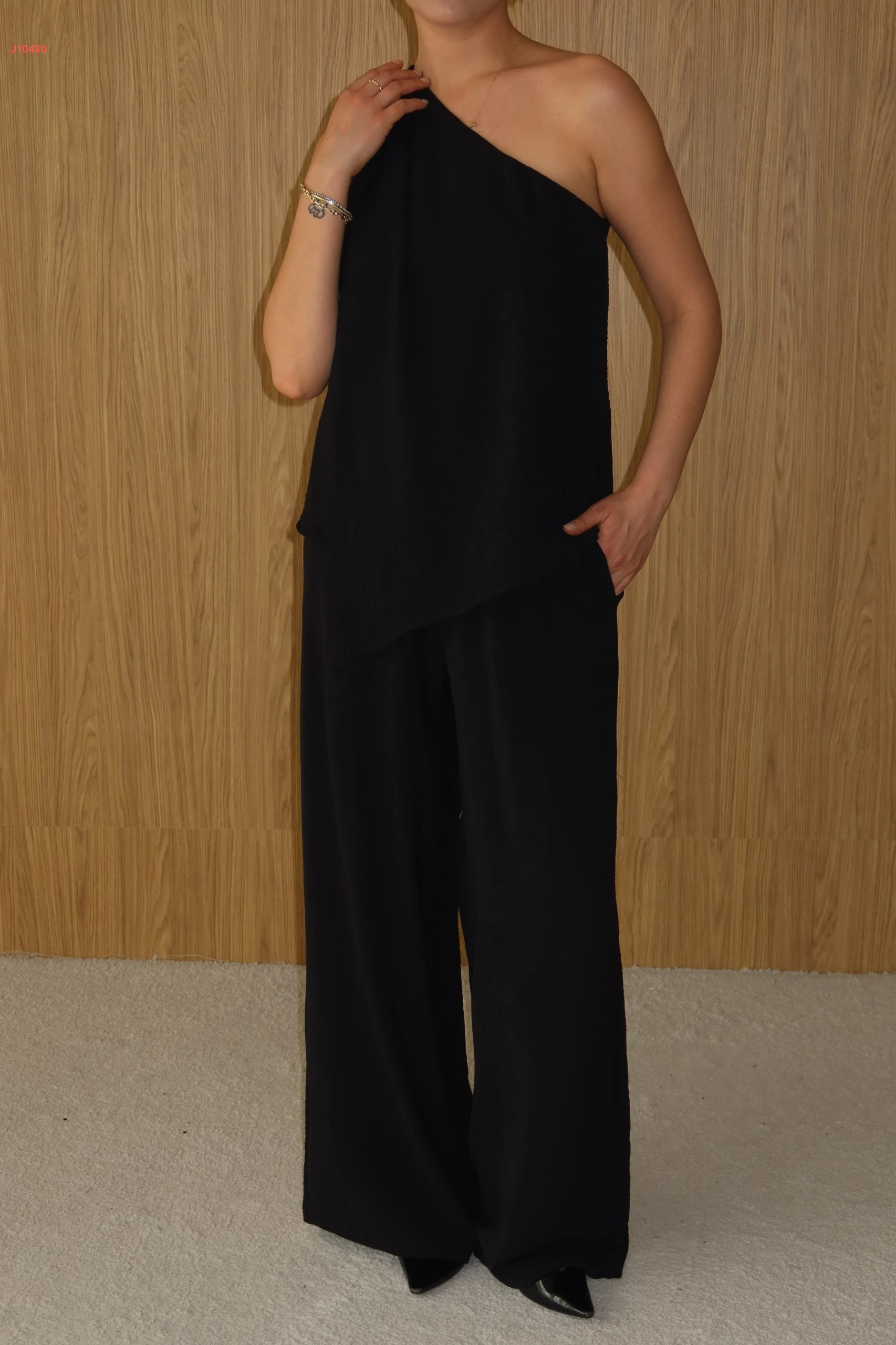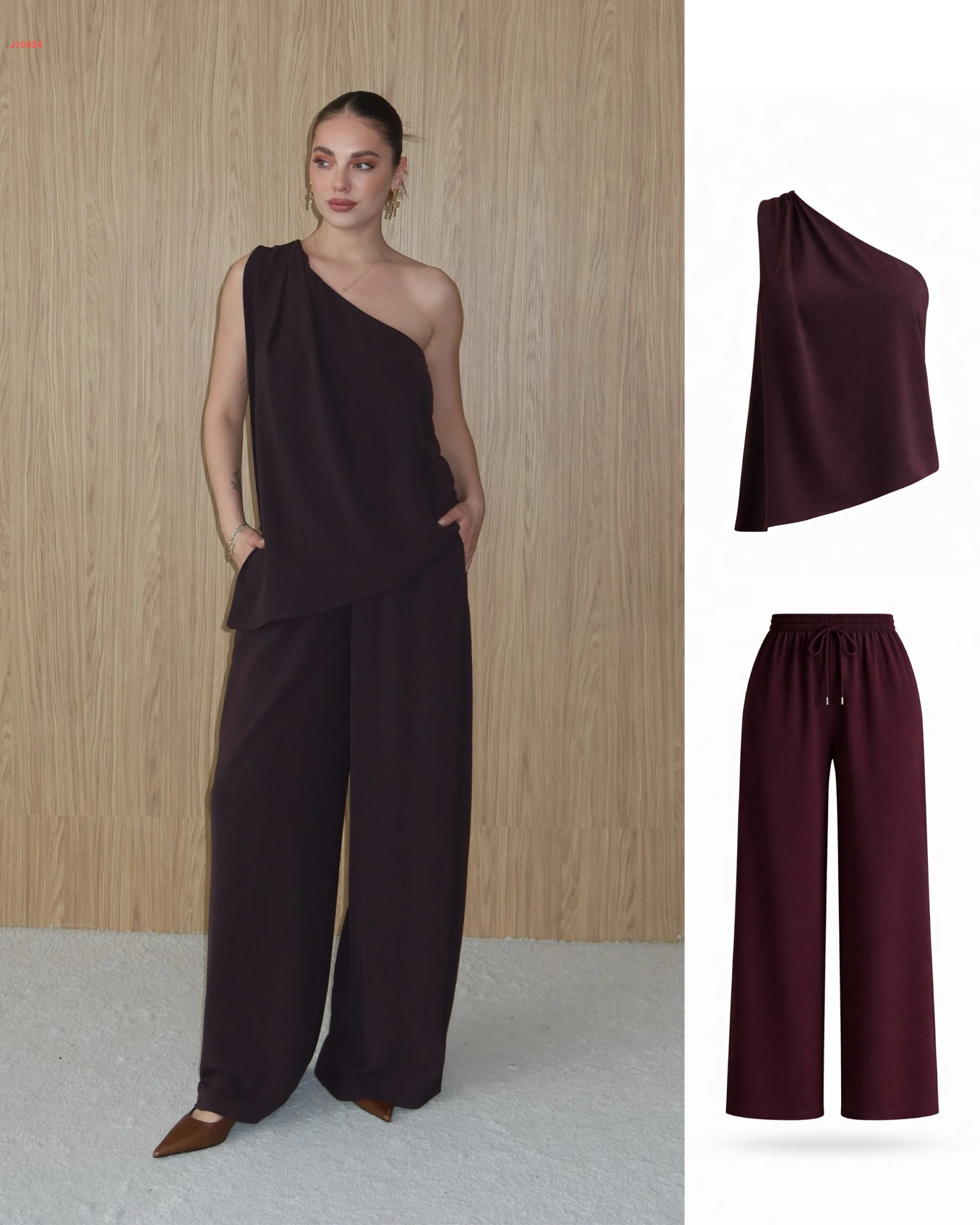 طقم بنطال وبلوزة حفر بكتف مكشوف