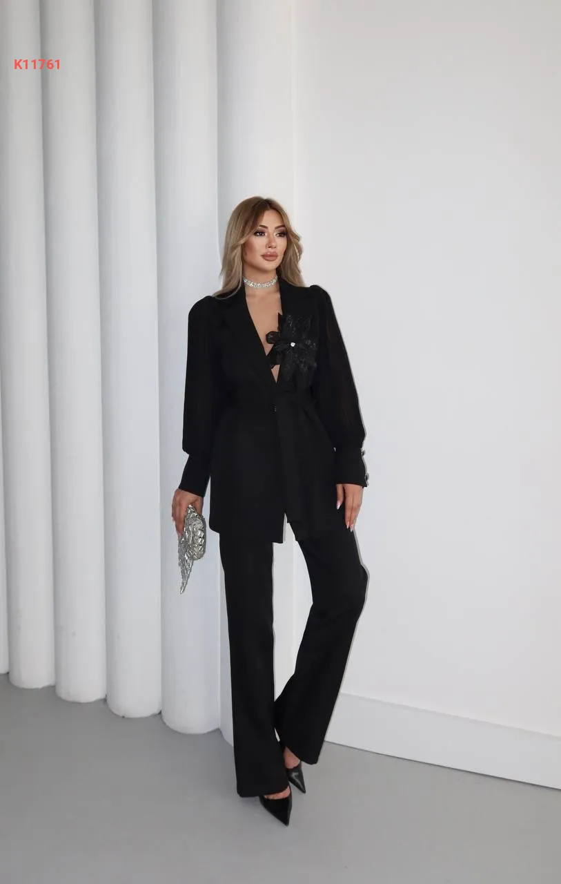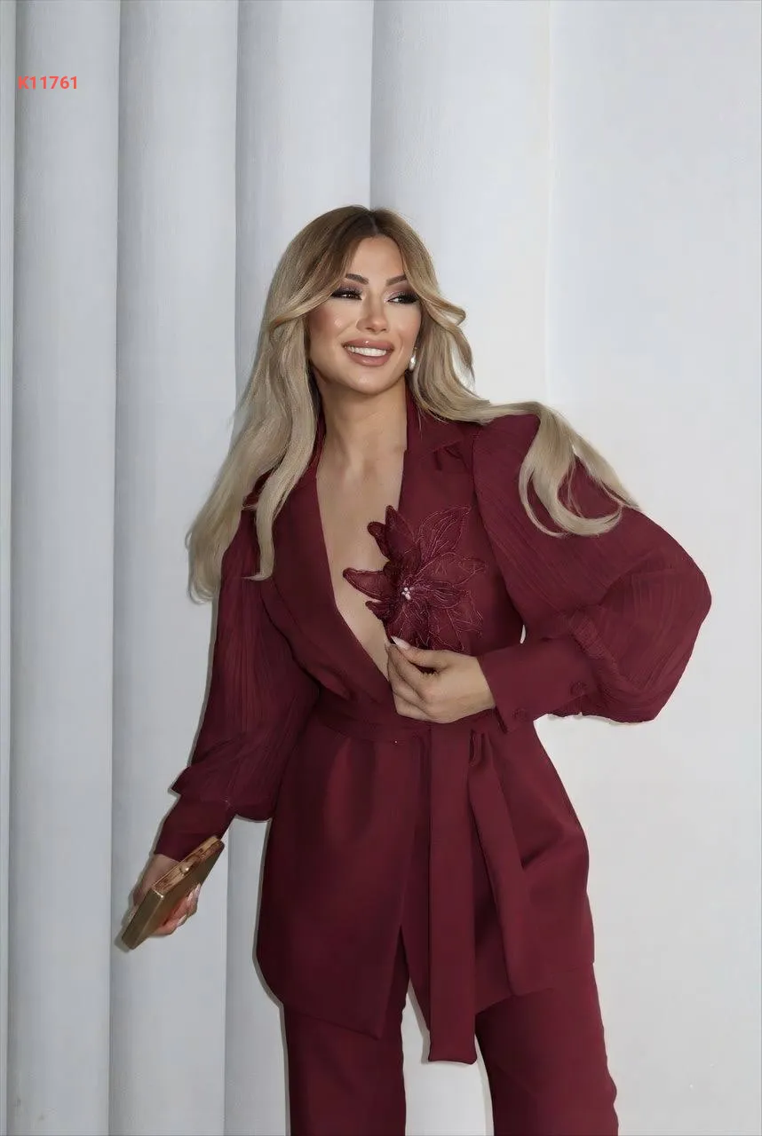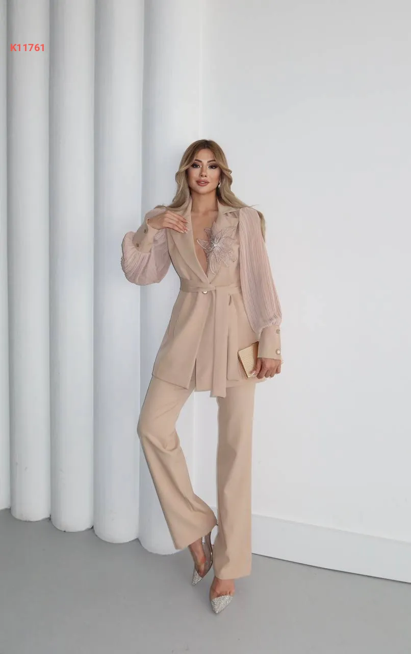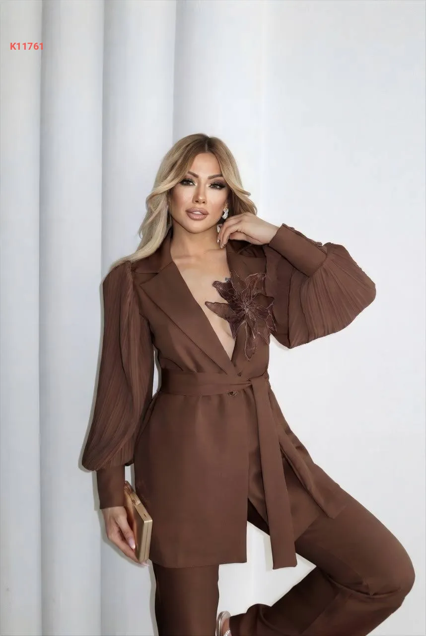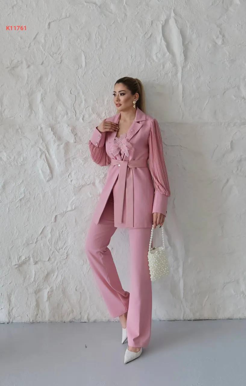 طقم بنطال وجاكيت بأكمام بليسيه