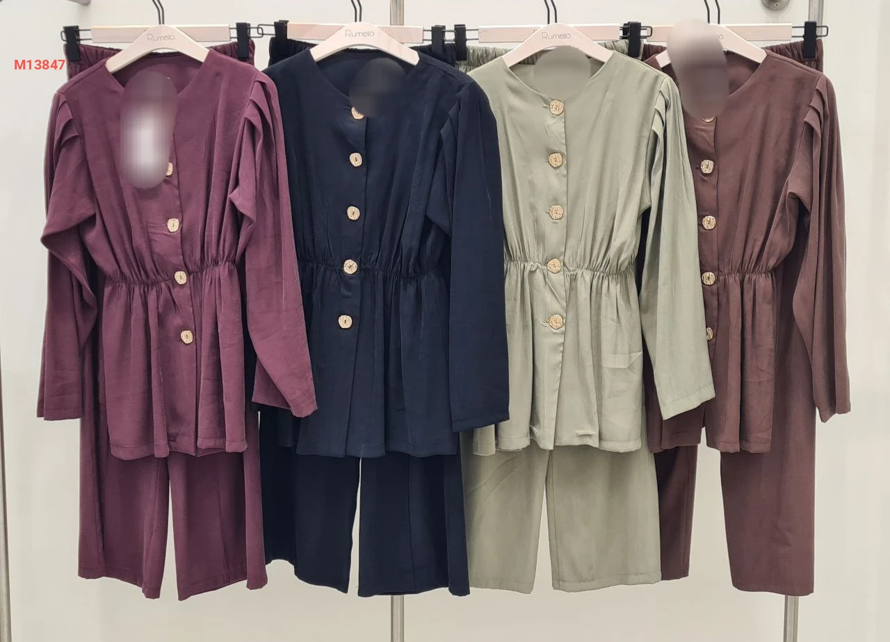 طقم بنطال وقميص بأزرار دهبي