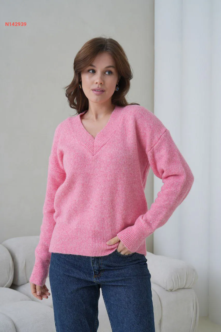 كنزة سادة بياقة دائرية