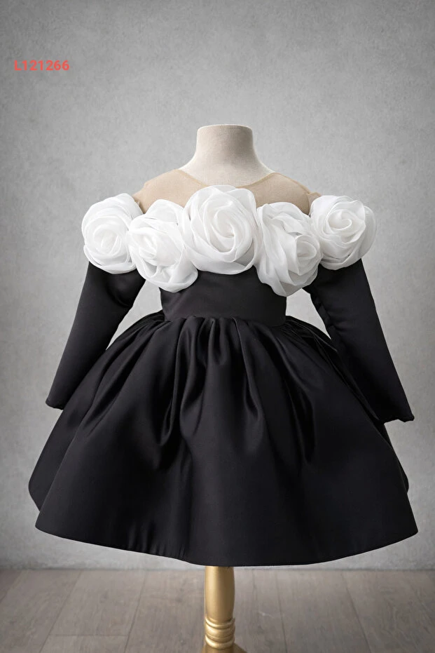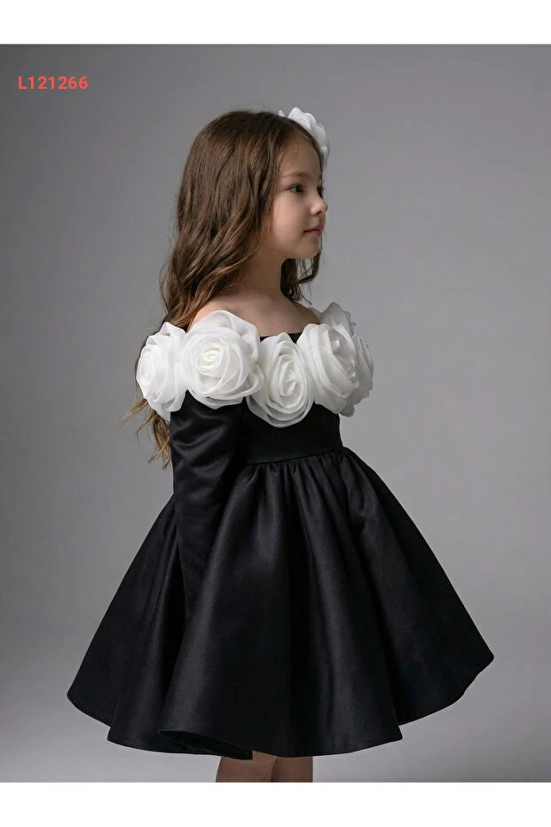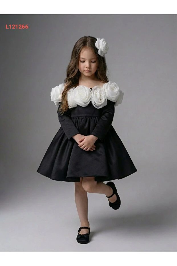 فساتين كابرا أكصوي للأطفال - فستان أسود مزين بزهور للمناسبات الخاصة وأعياد الميلاد