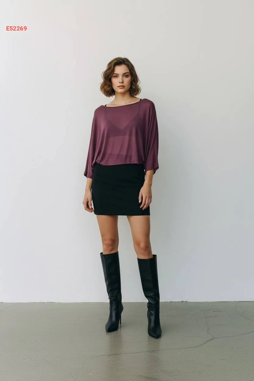 بلوزة شفاف بأكمام قصيرة