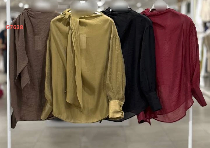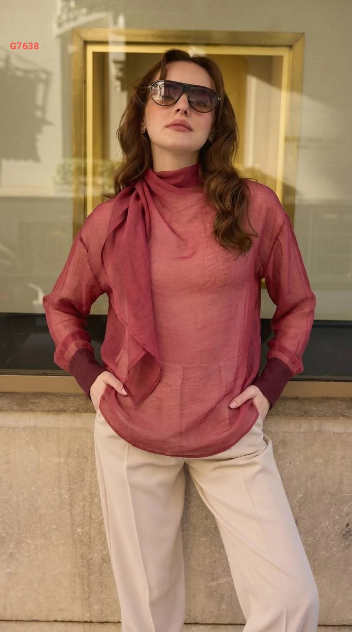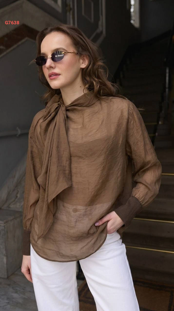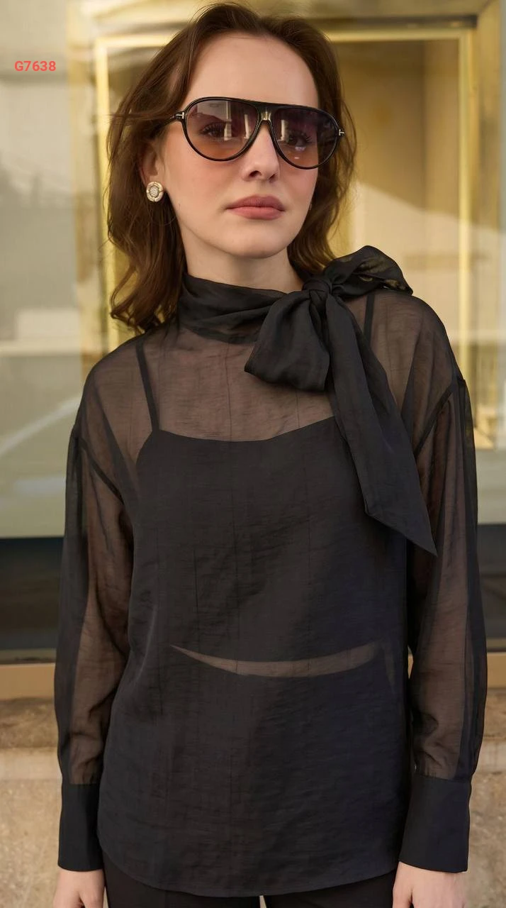 بلوزة شفاف بأكمام بربطة عنق