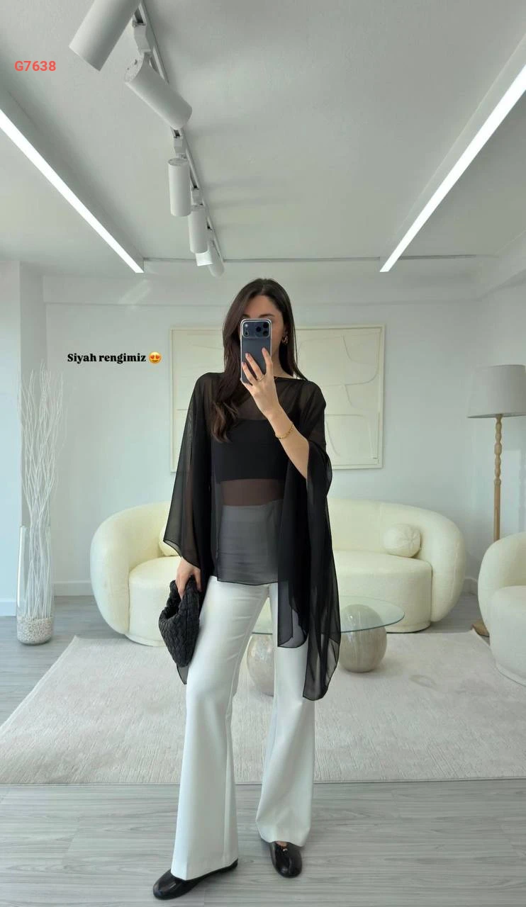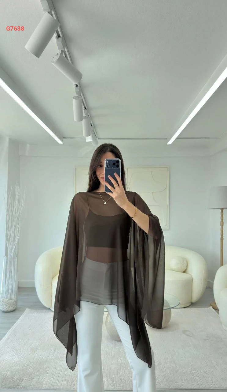بلوزة شفاف بأكمام واسعة