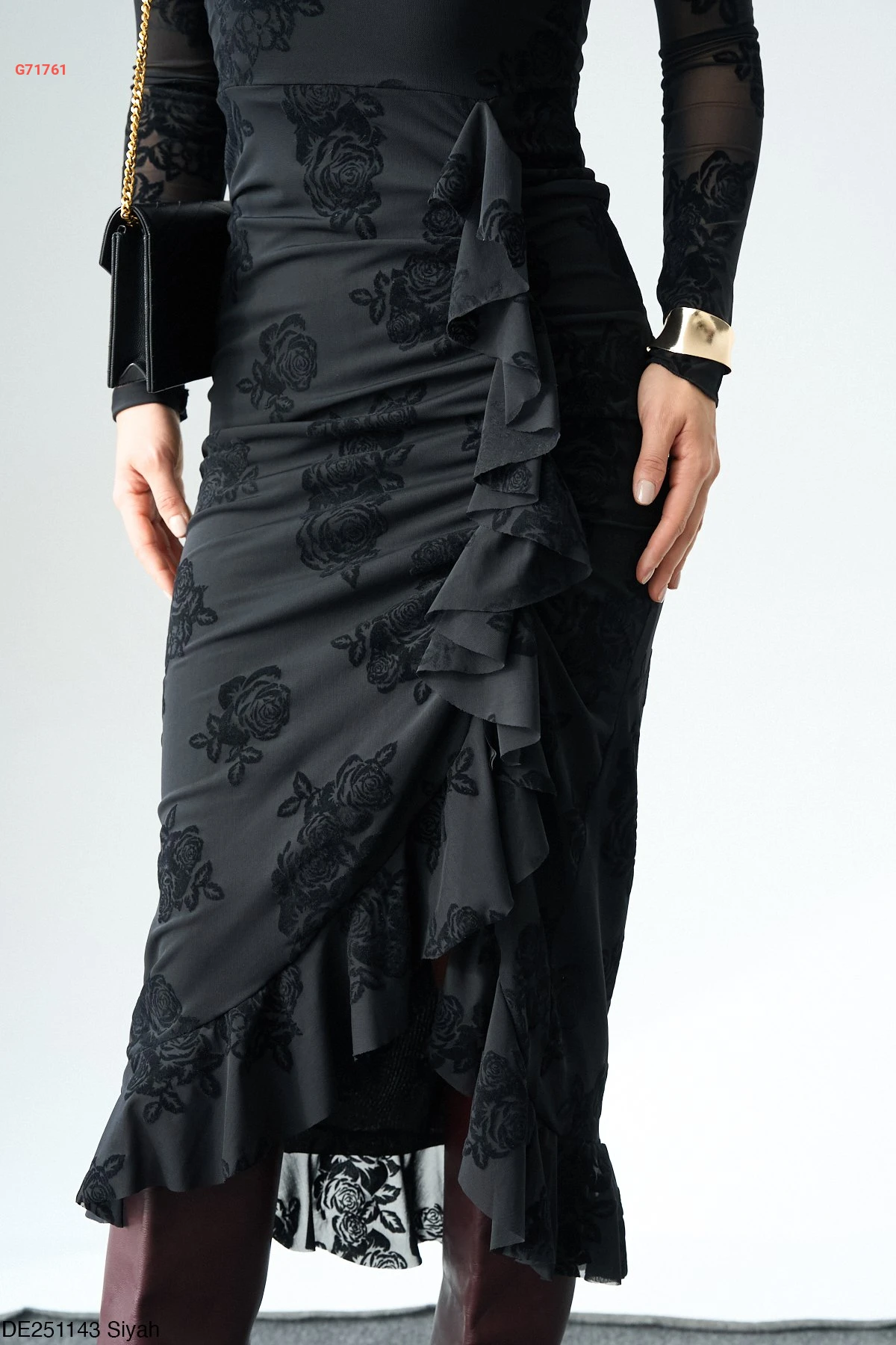 فستان شفاف منقوش ورد بتفاصيل مجمعة