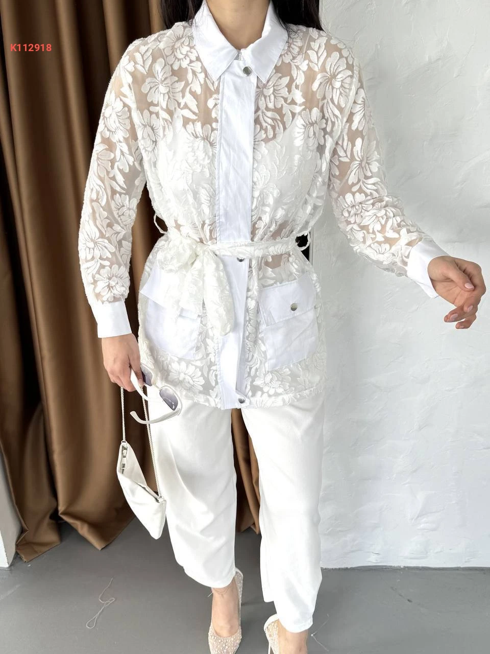 جاكيت شفاف منقوش بتفاصيل جيبير