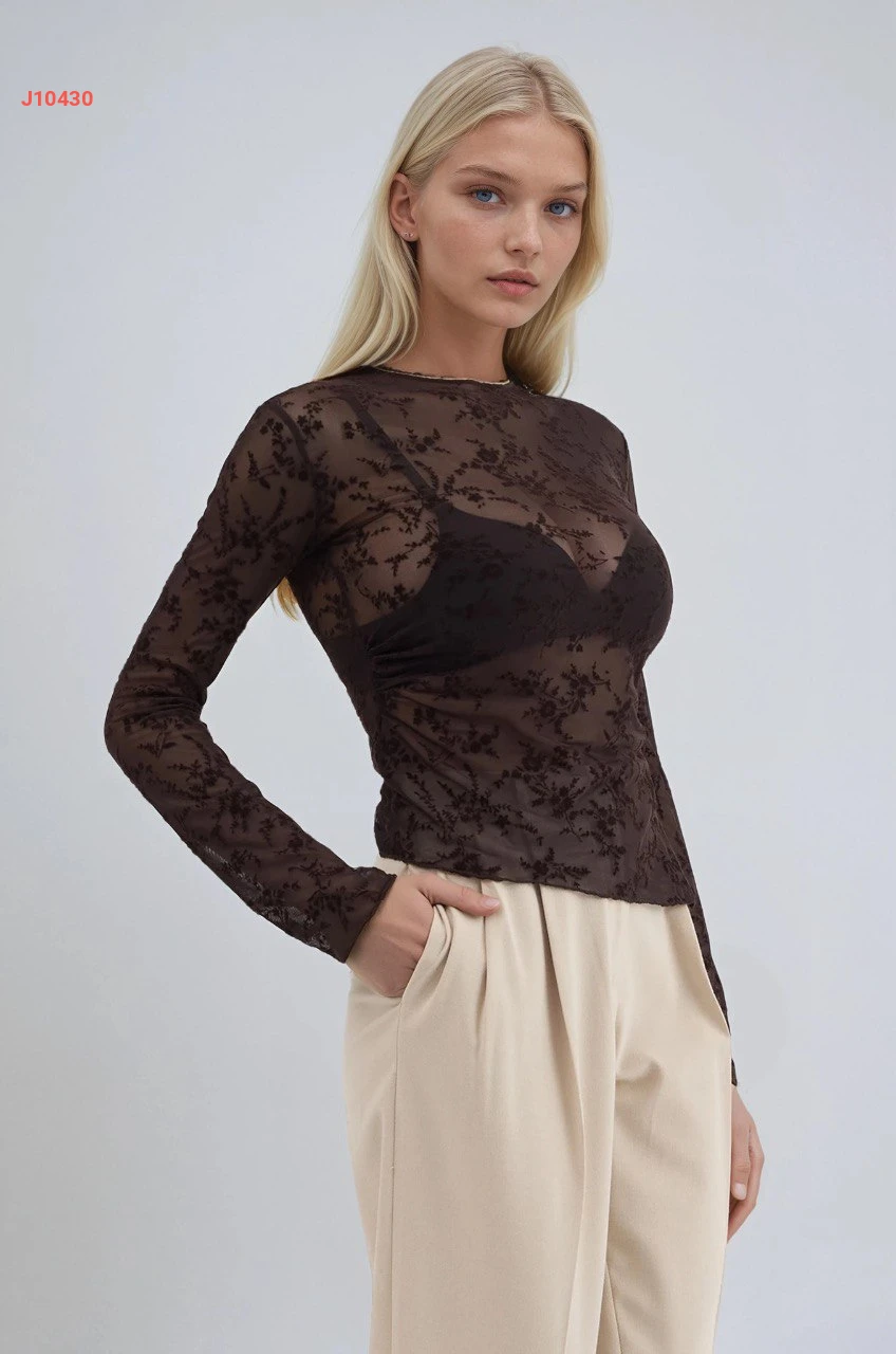بلوزة شفاف منقوشة