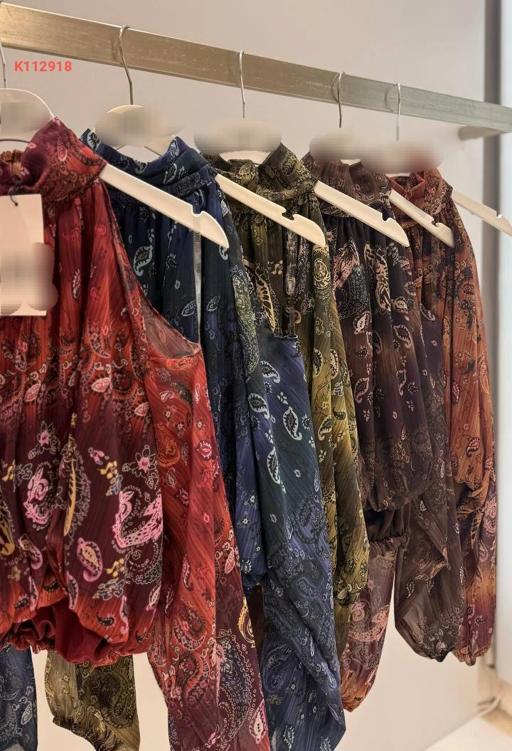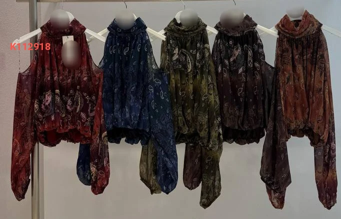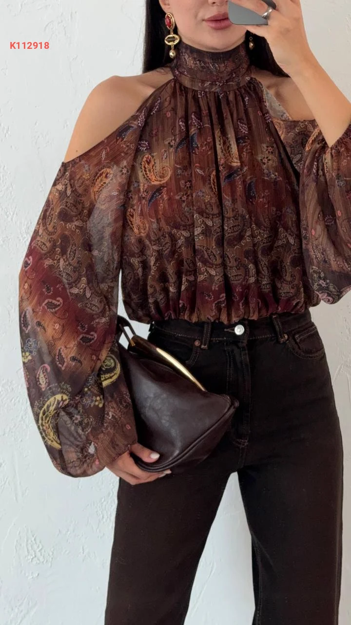 بلوزة شيفون منقوشة بأكتاف مكشوفة