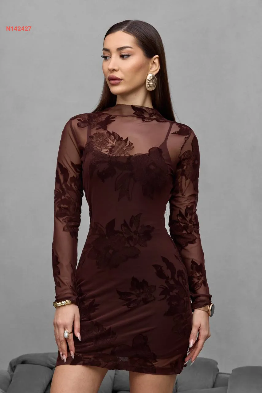 فستان قصير شفاف منقوش
