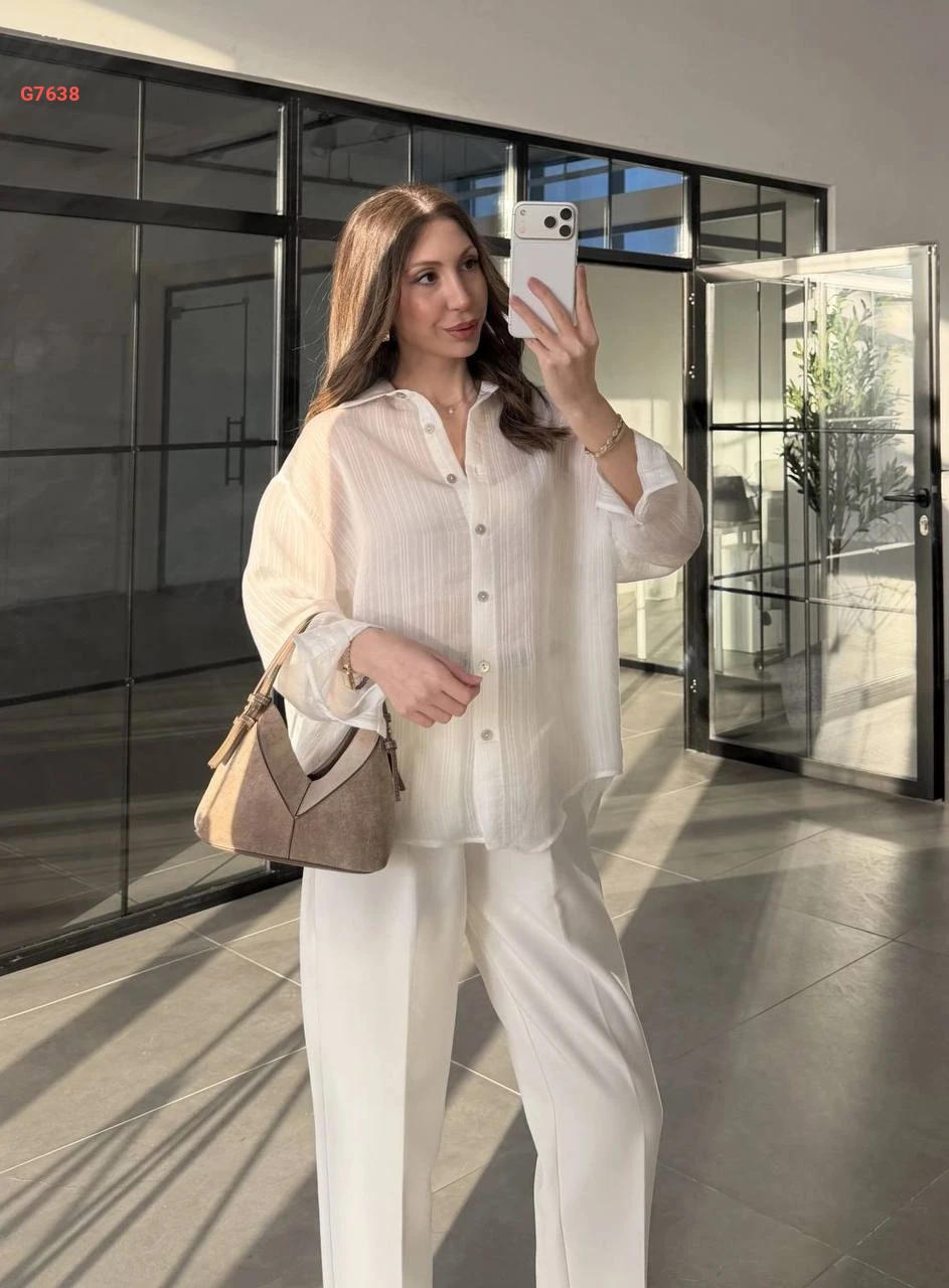 قميص شفاف بتفاصيل مقلمة