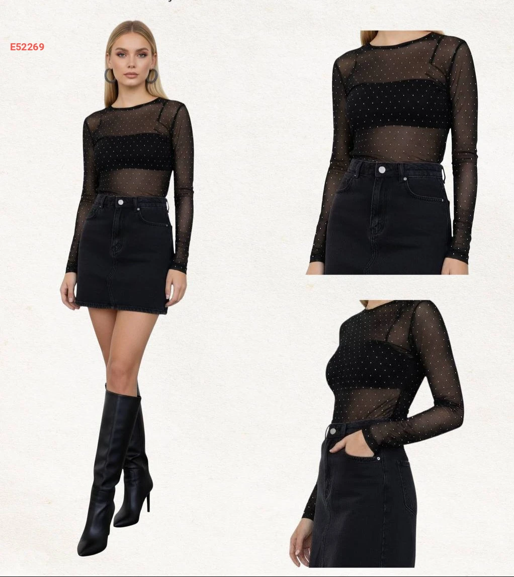 بلوزة تول شفاف حجرية