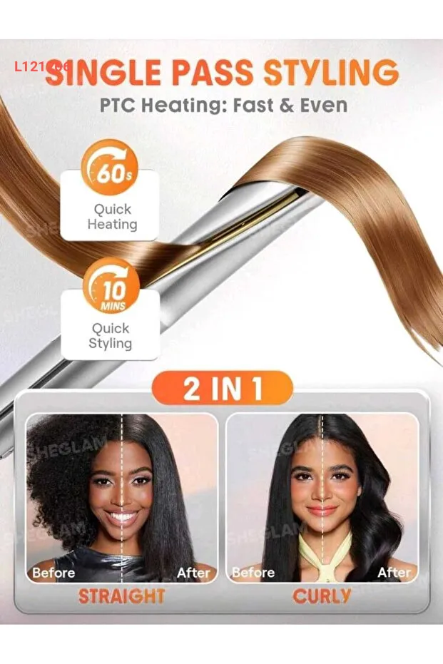 اكتشفي سر الجمال المثالي لشعرك مع منتج SHEGLAM Hair 2 in 1! يعد هذا الجهاز الثوري خيارك الأمثل للحصول على تسريحات ناعمة وأنيقة أو تجاعيد رائعة في آن واحد، حيث يجمع بين التكنولوجيا المتقدمة والتصميم الذكي. احصلي على مظهر ساحر وصحي، بفضل خصائص العناية بالشعر المدمجة التي تمنحك نتائج احترافية في دقائق.