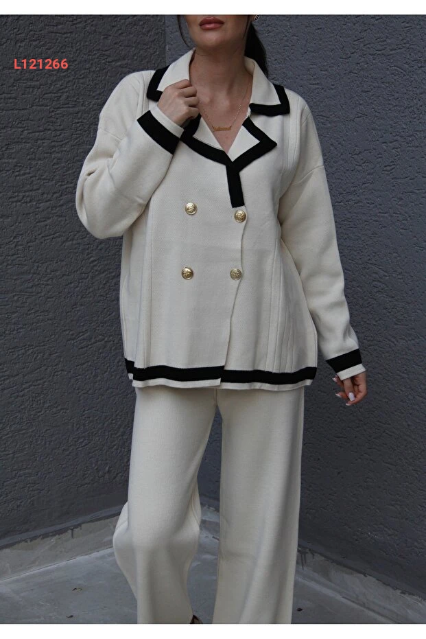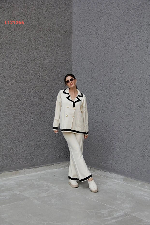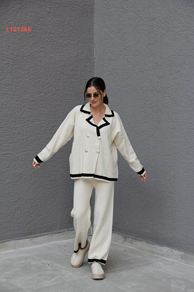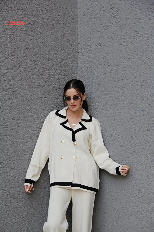 استمتع بأناقة مريحة مع مجموعة Scbutik Bej كريمي، التي تتميز بتصميم Oversize الجذاب والتي تناسب جميع الأجسام. تحتوي على حياكة أكريلك ناعمة ومريحة، وتضفي الأزرار الأربعة الذهبية لمسة من الفخامة، مما يجعلها الخيار المثالي لكل المناسبات. ارتديها مع بنطلونها الأنيق للحصول على مظهر متكامل يعكس أسلوبك الفريد.
