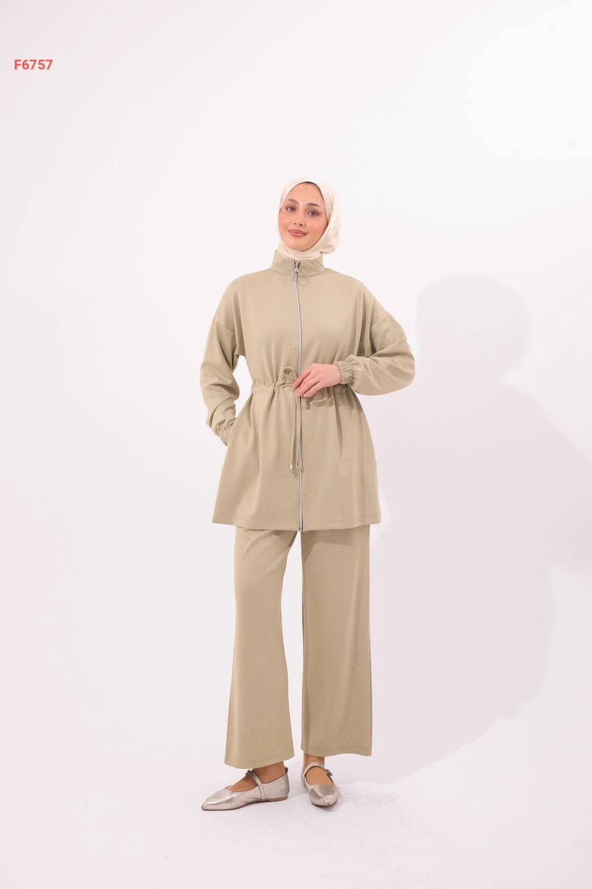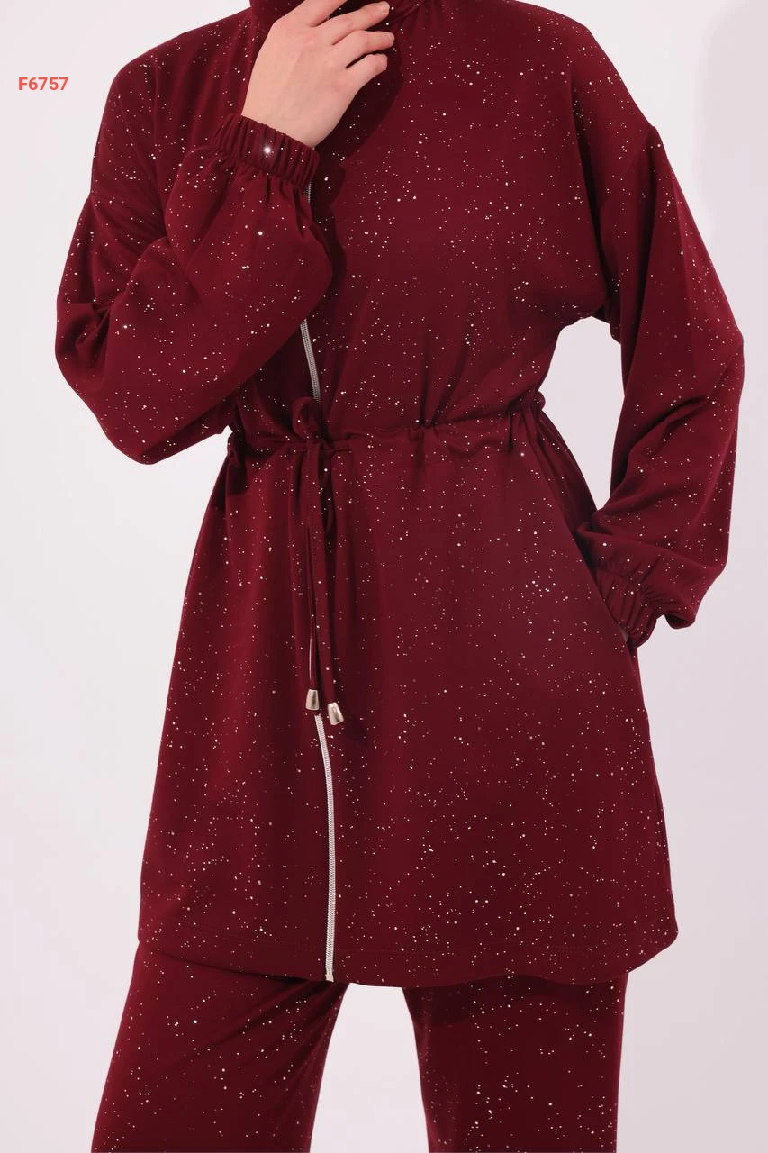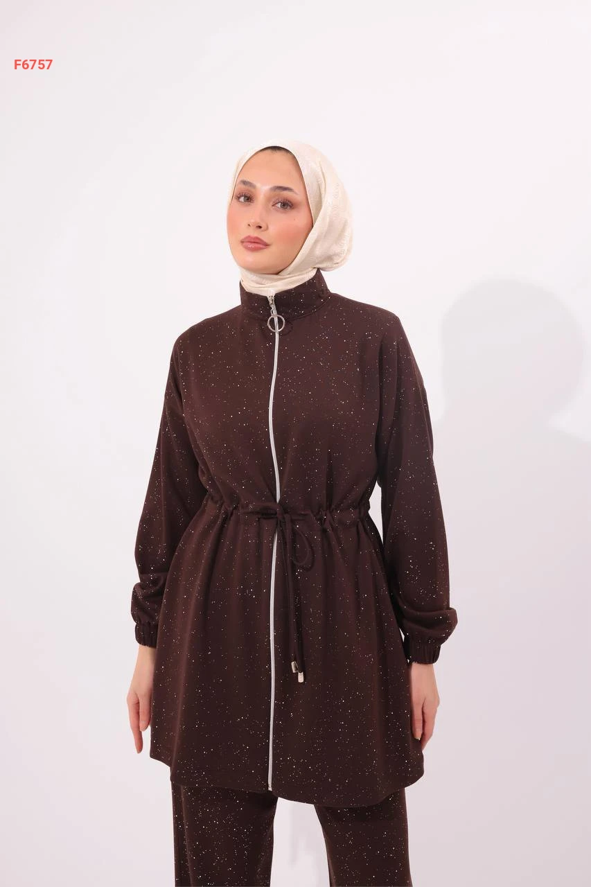 طقم بنطال لميع مع جاكيت بسحاب