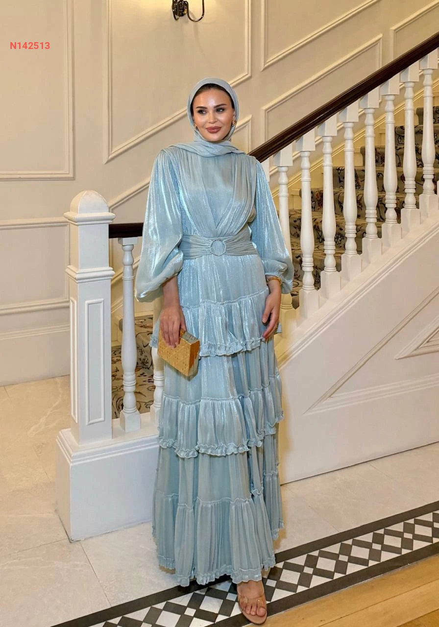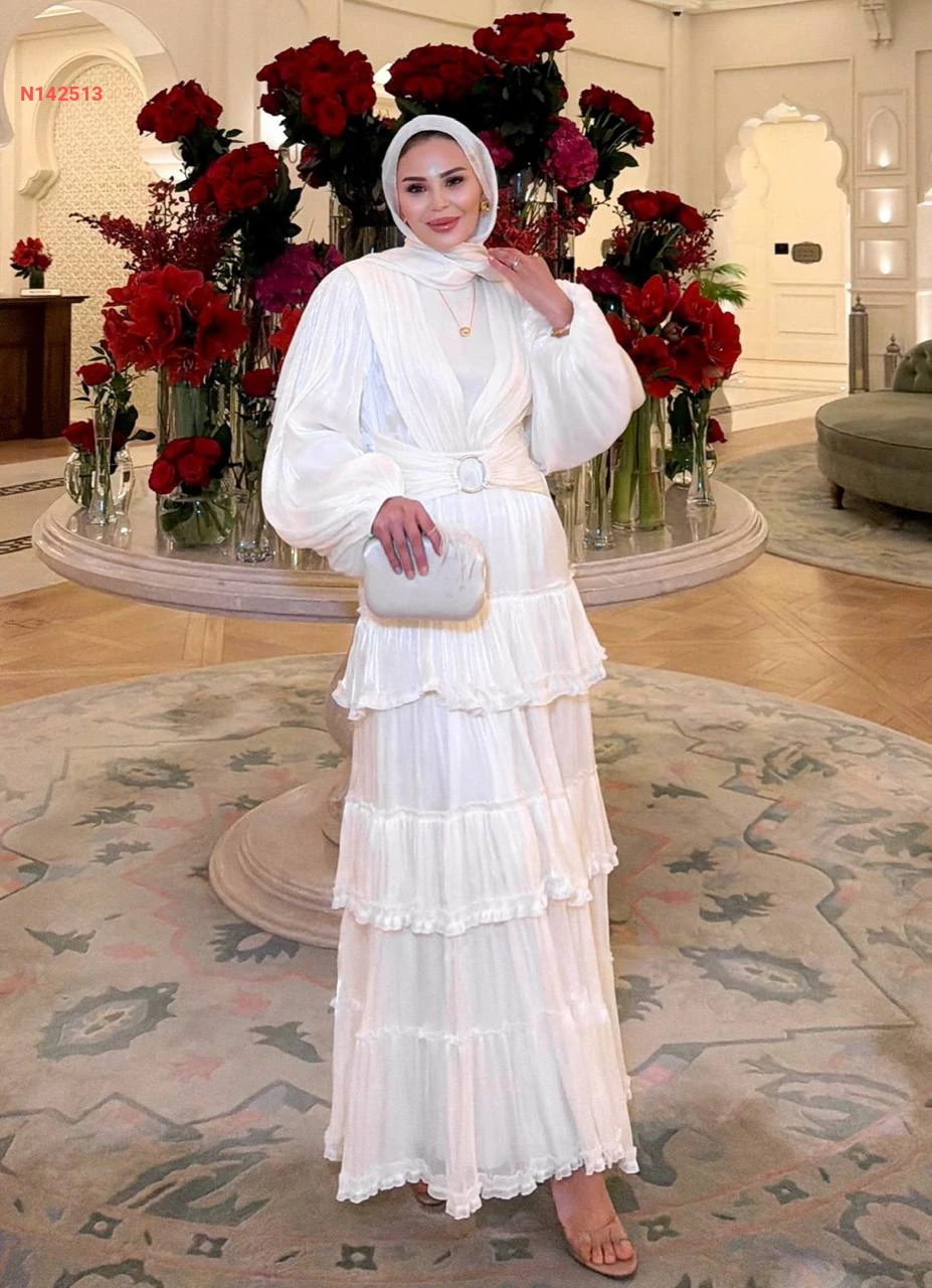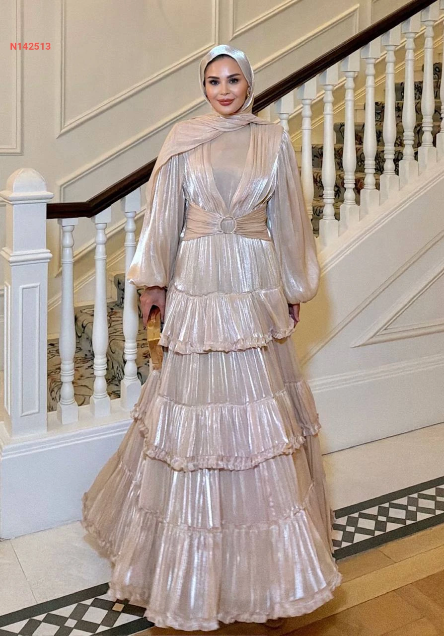 فستان طويل كشكش لميع