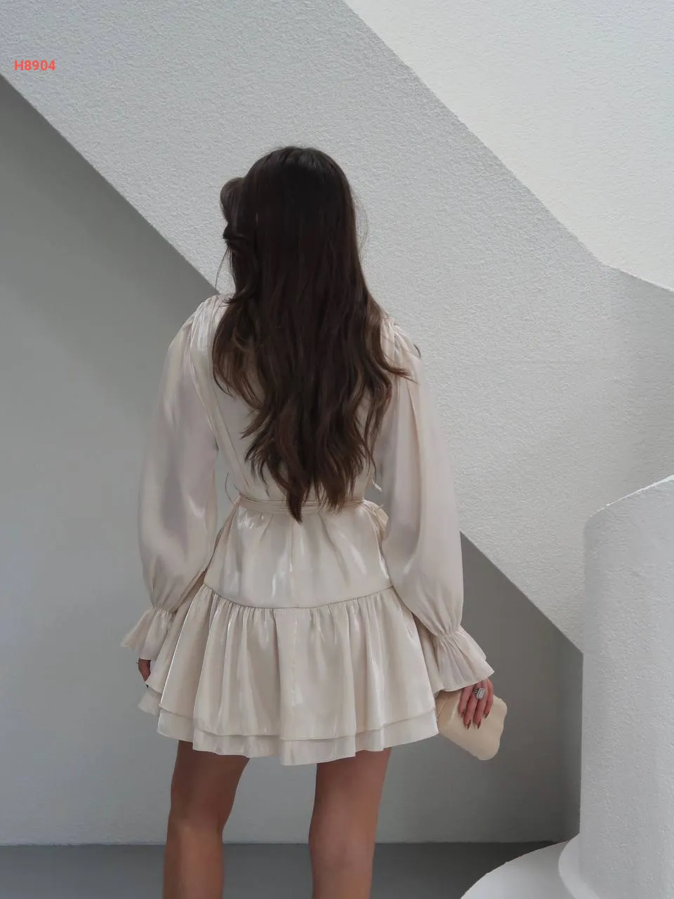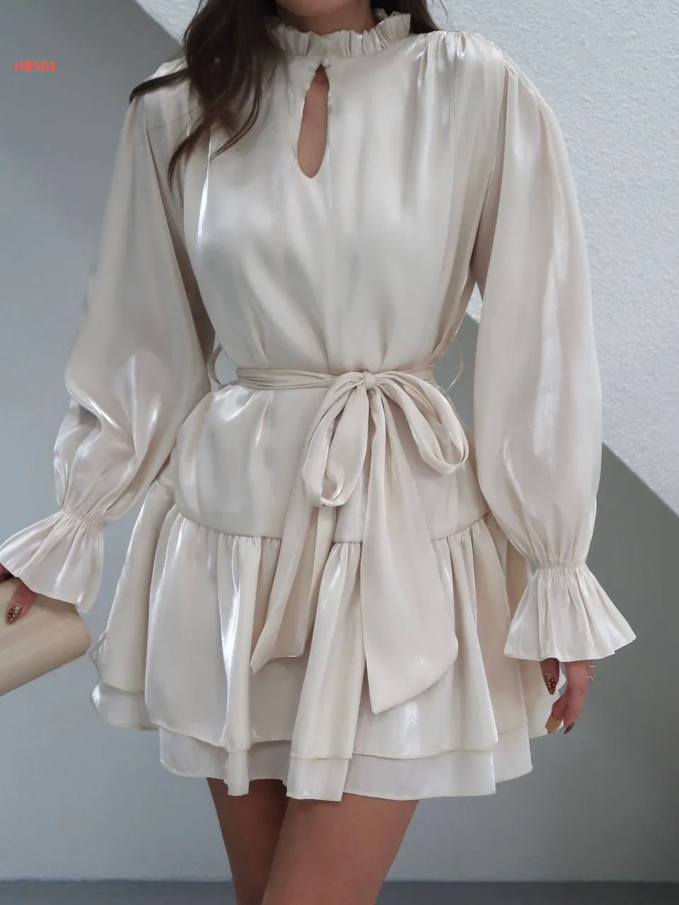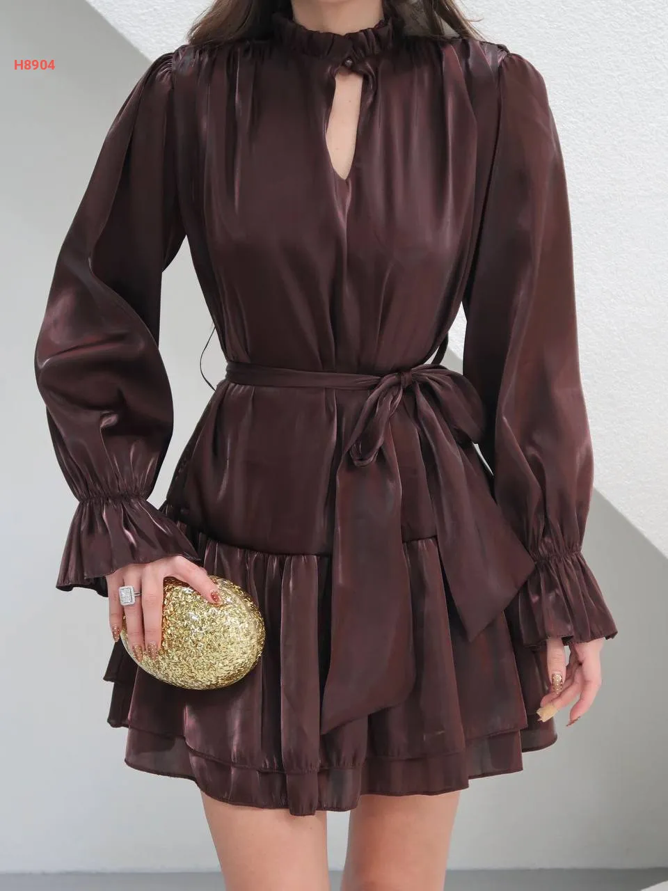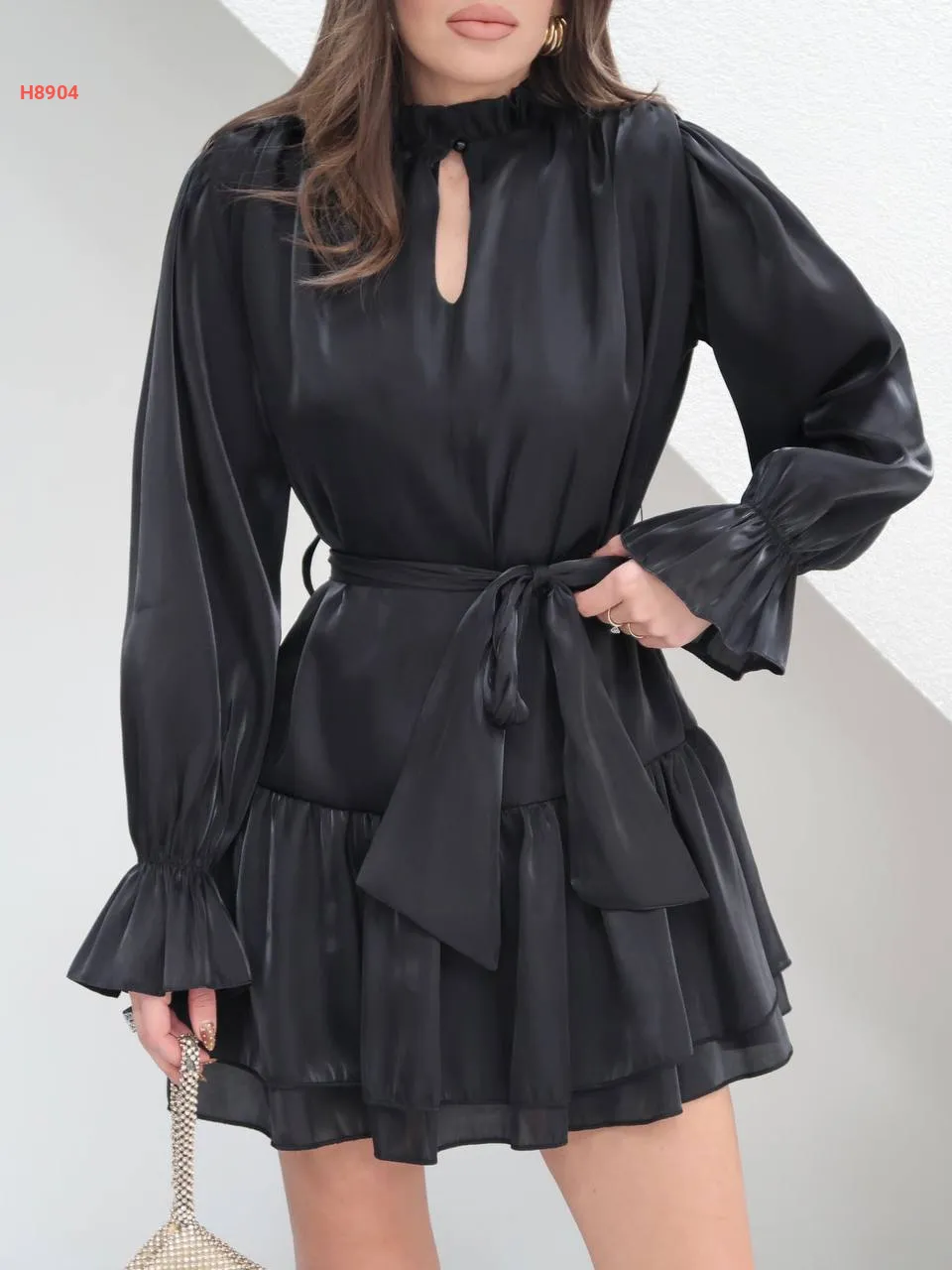 فستان قصير كشكش لميع مع زنار